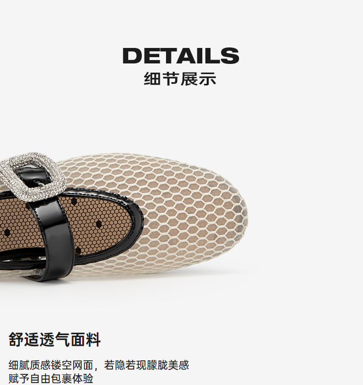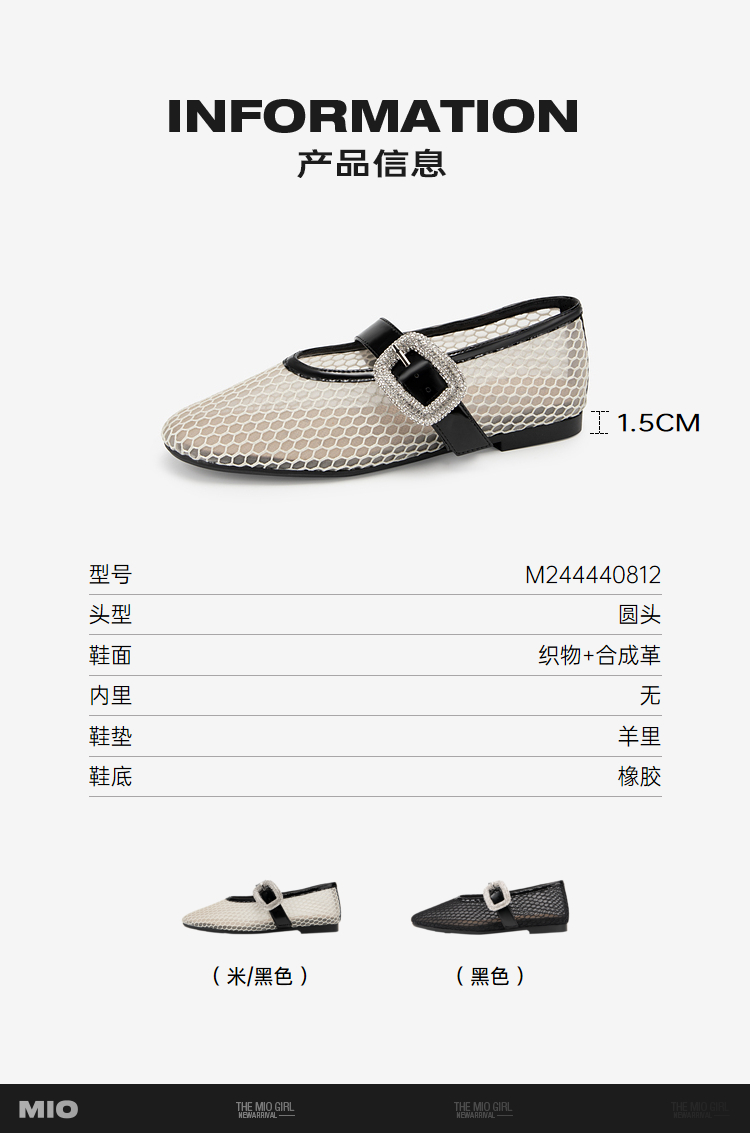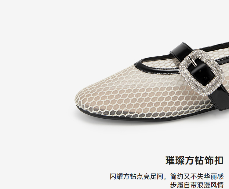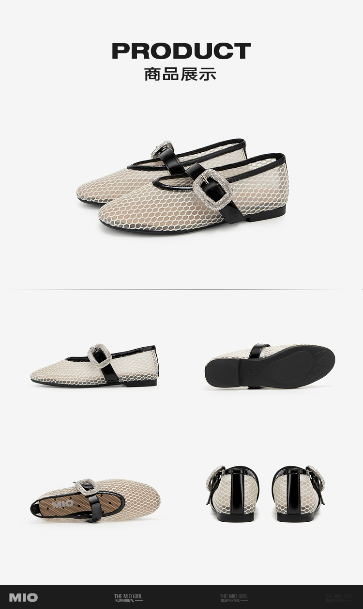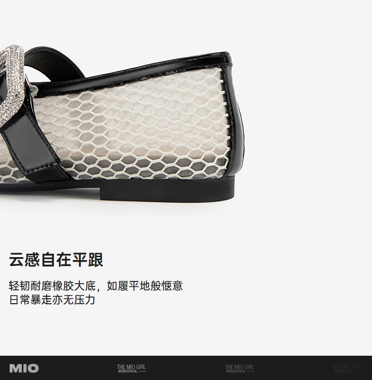 MIO米奥秋季单鞋平底鞋镂空渔网玛丽珍一字扣带芭蕾舞鞋女鞋M244440812