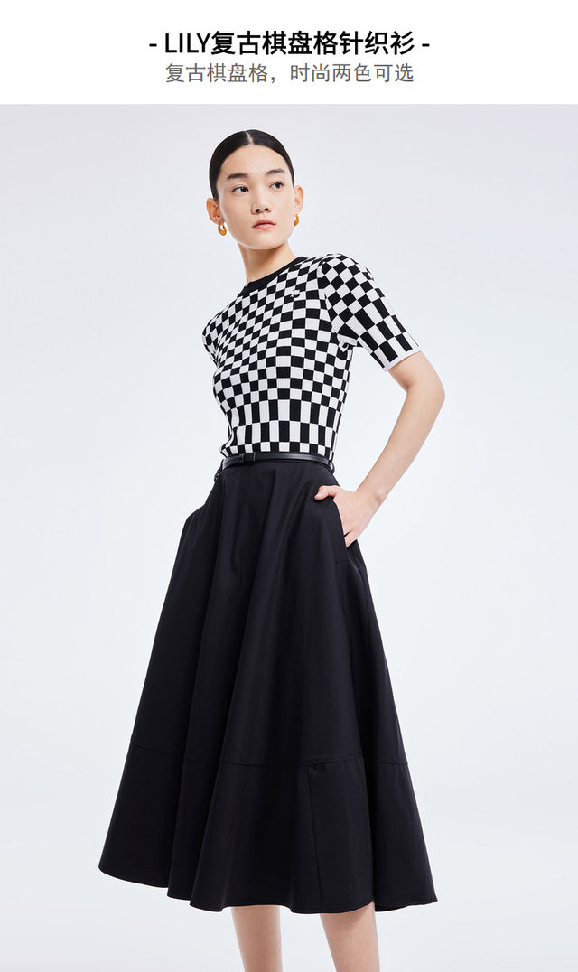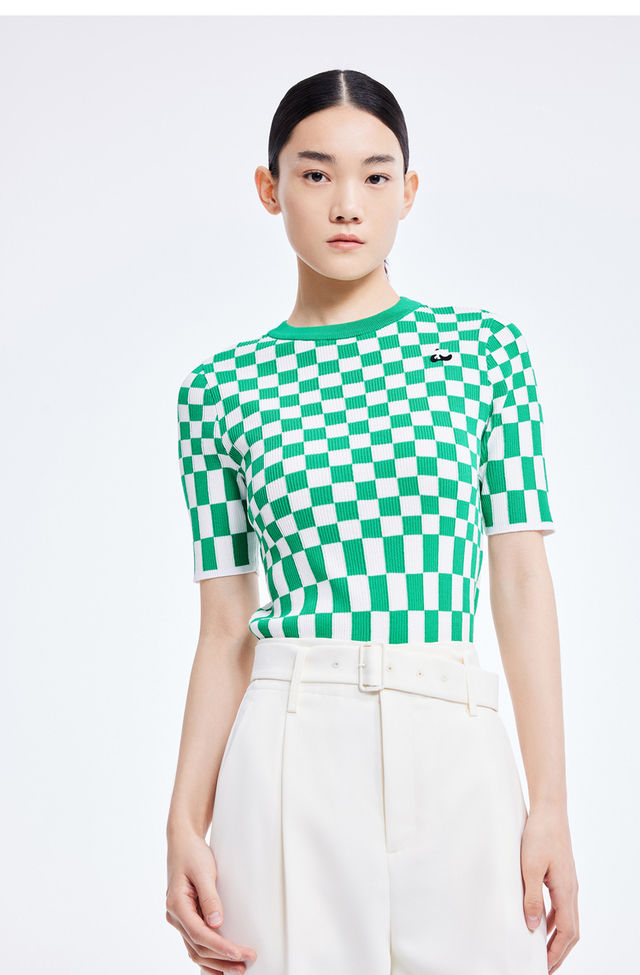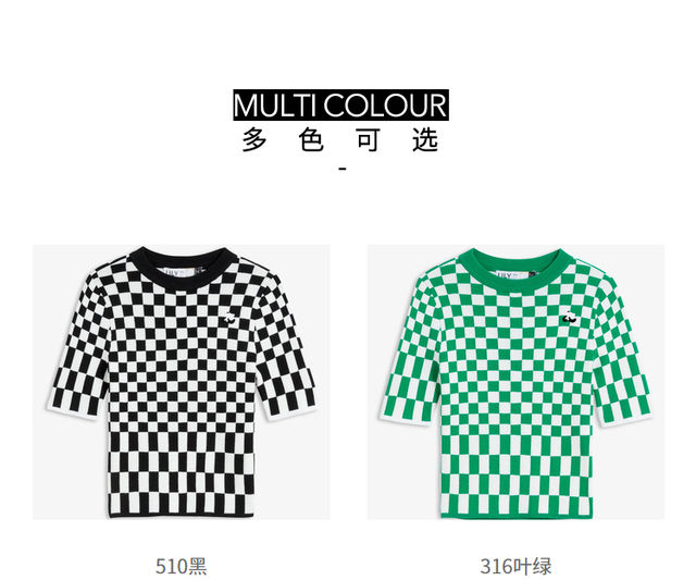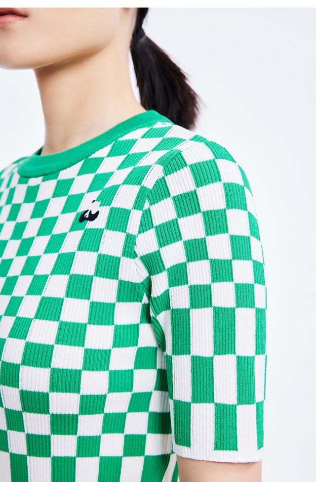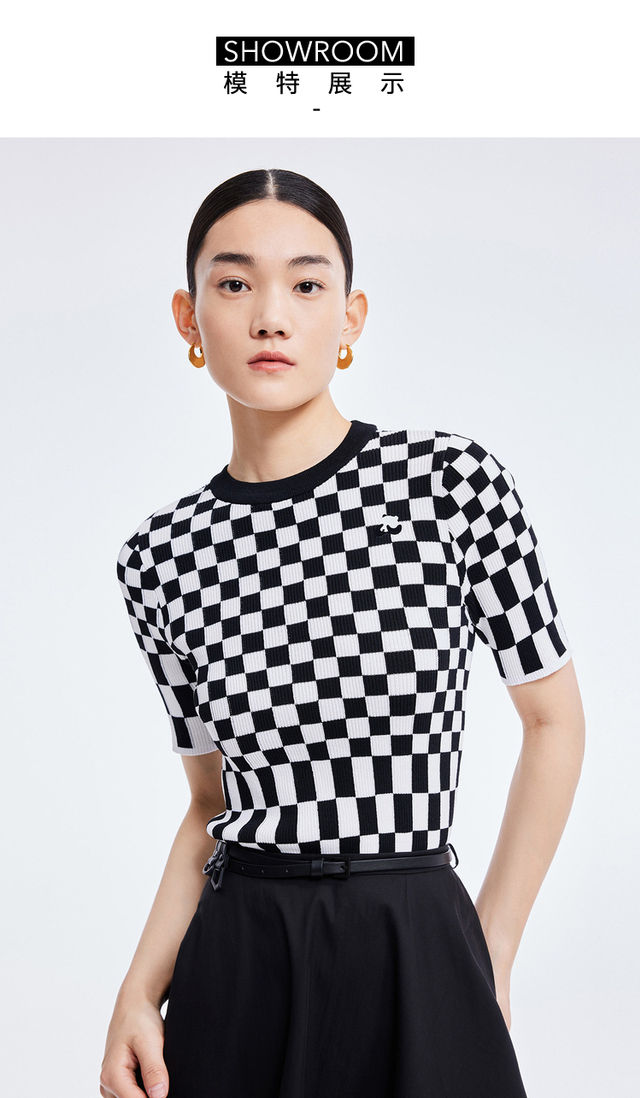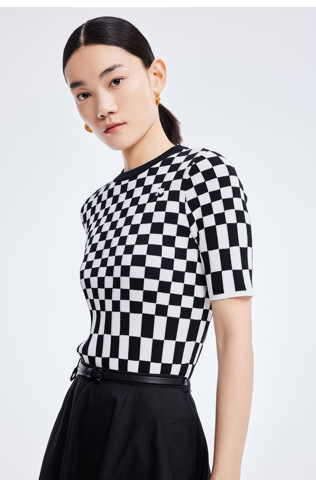 LILY2022夏新款女装复古棋盘格修身毛针织衫内搭上衣122200TK320