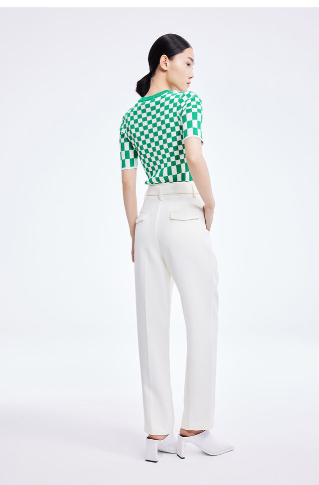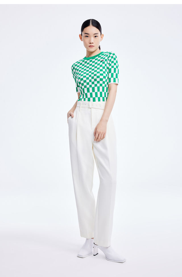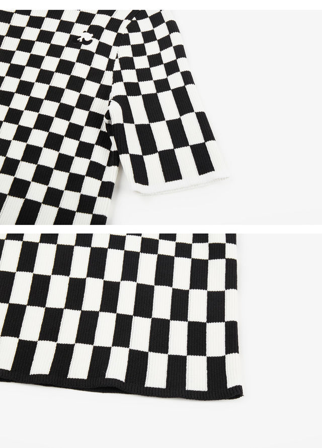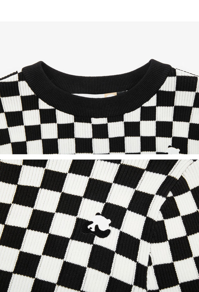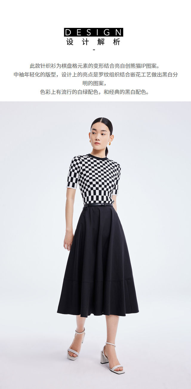 LILY2022夏新款女装复古棋盘格修身毛针织衫内搭上衣122200TK320