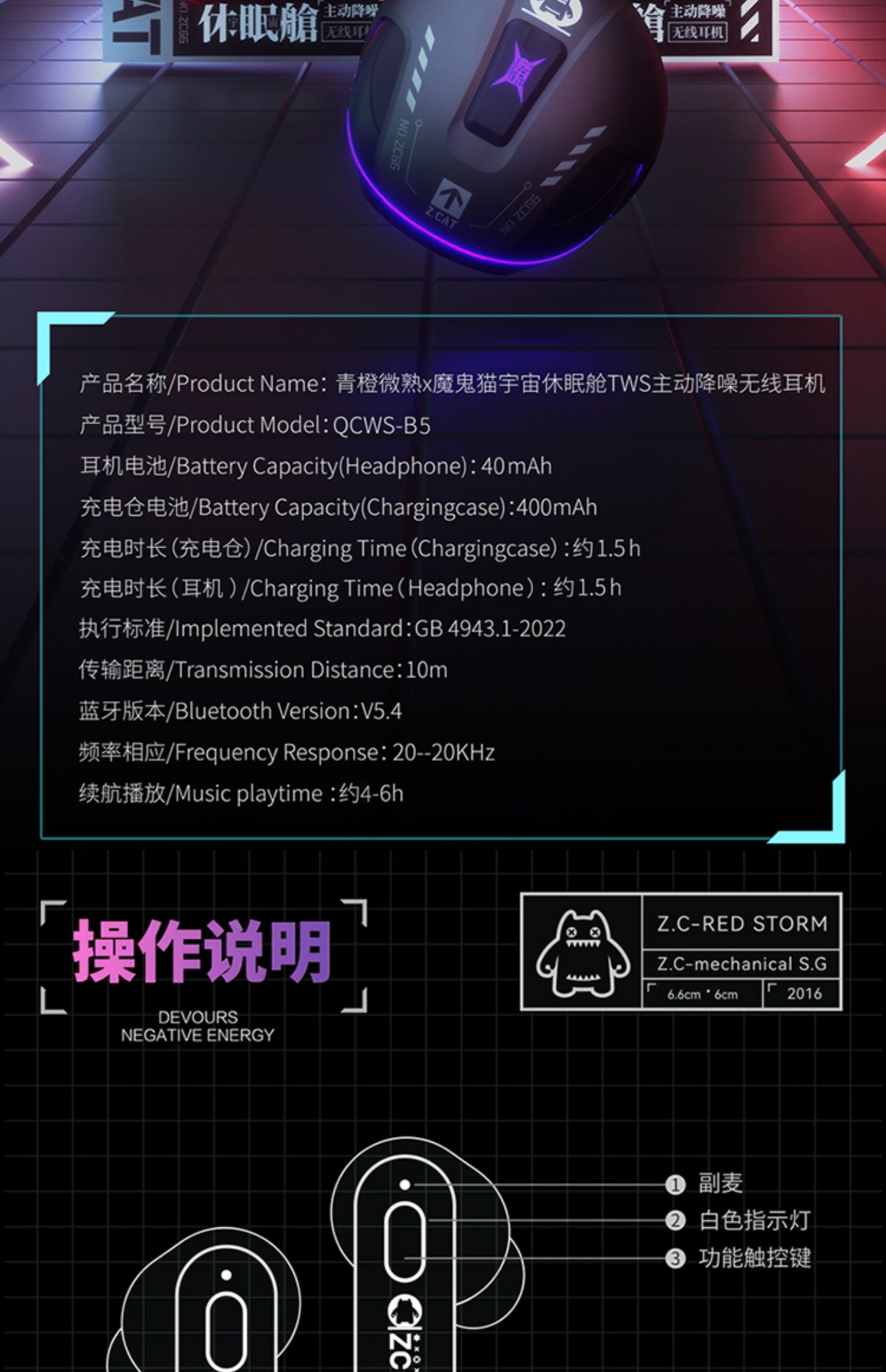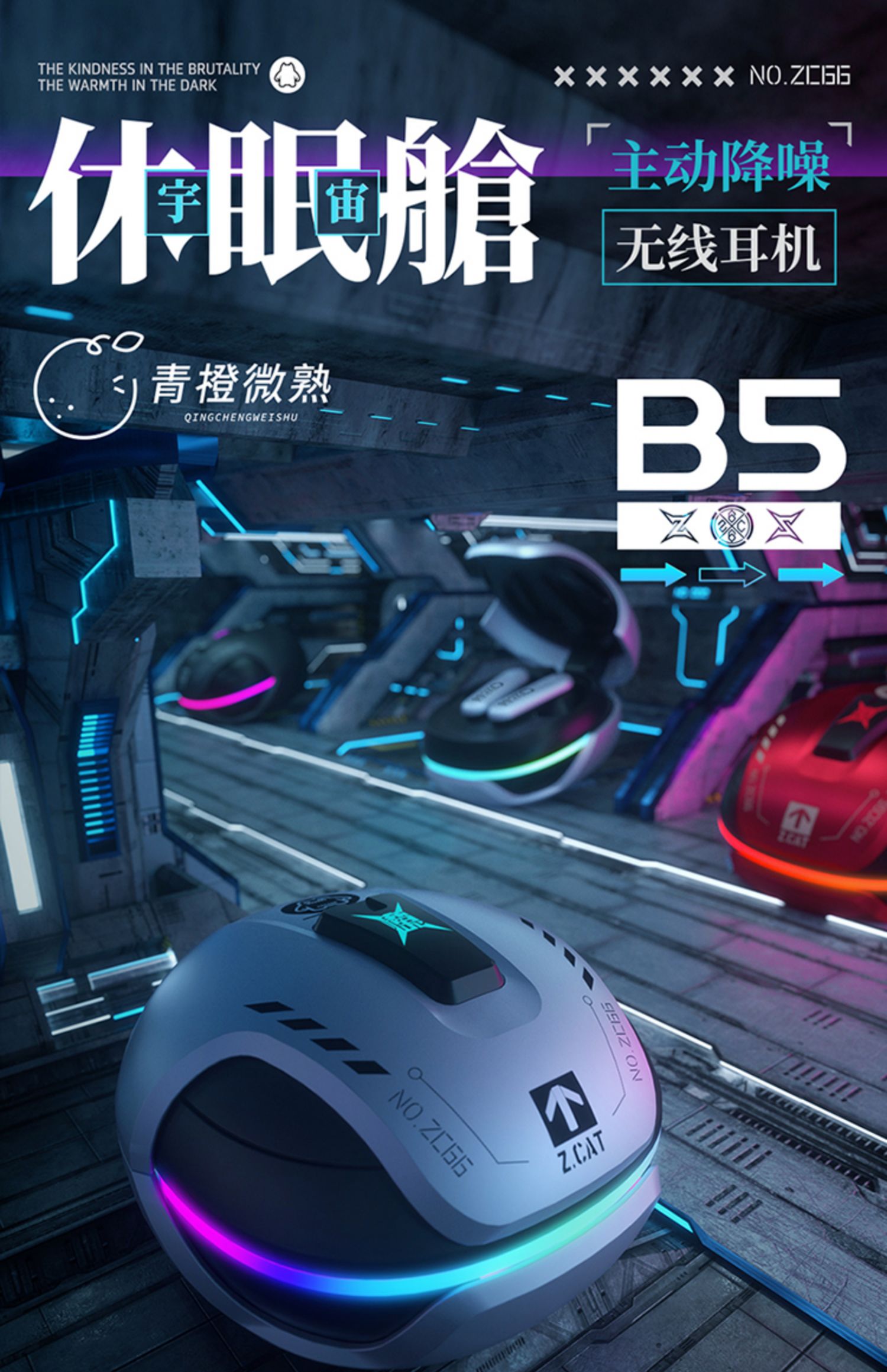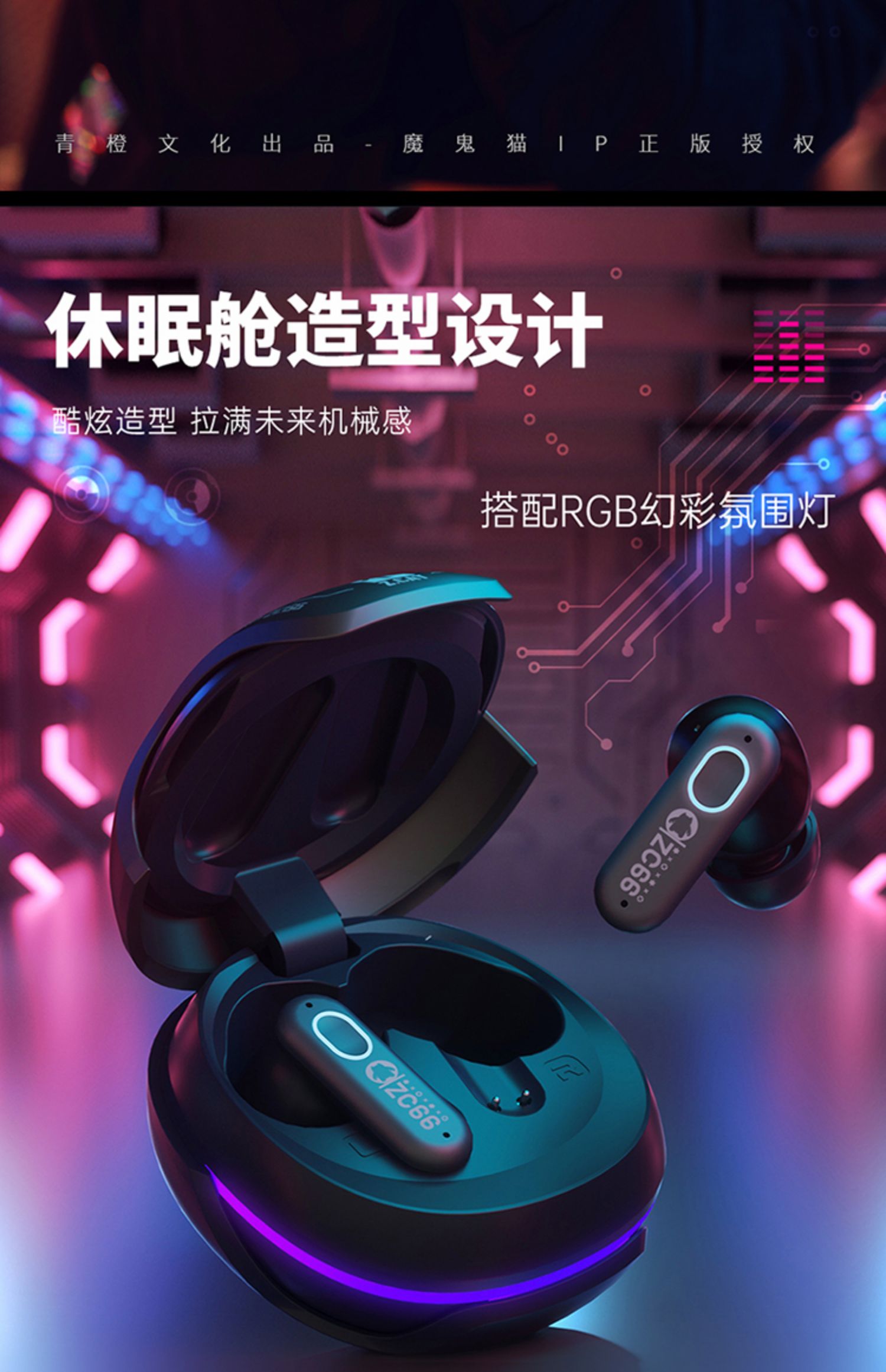 F-MGM-B5 青橙魔鬼猫休眠舱 主动降噪无线耳机