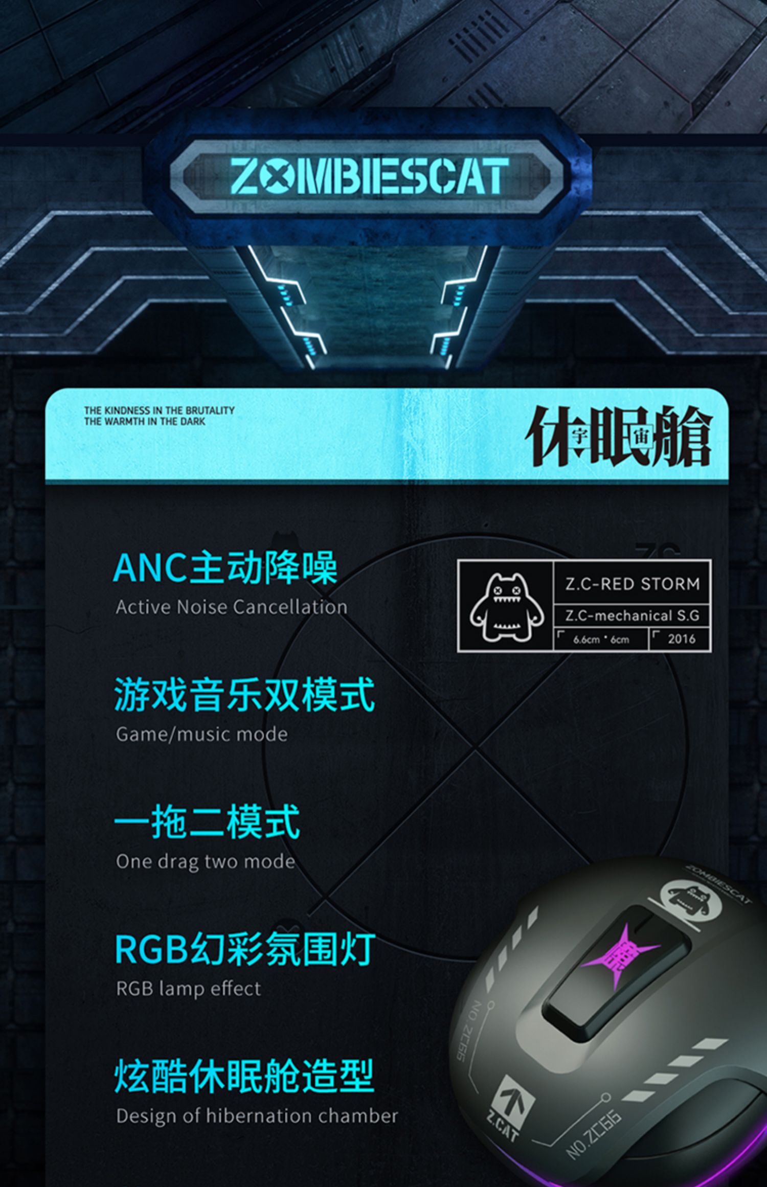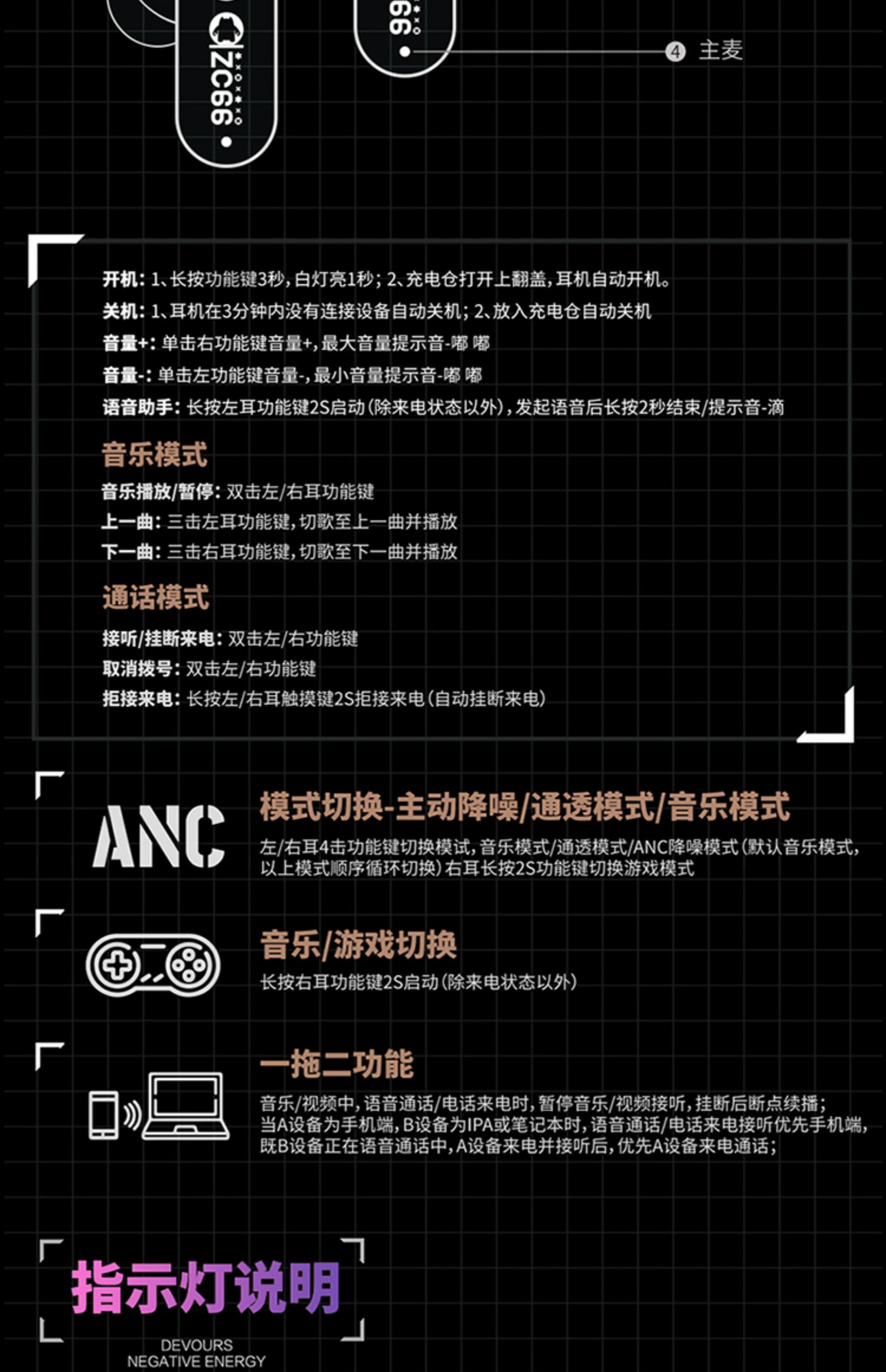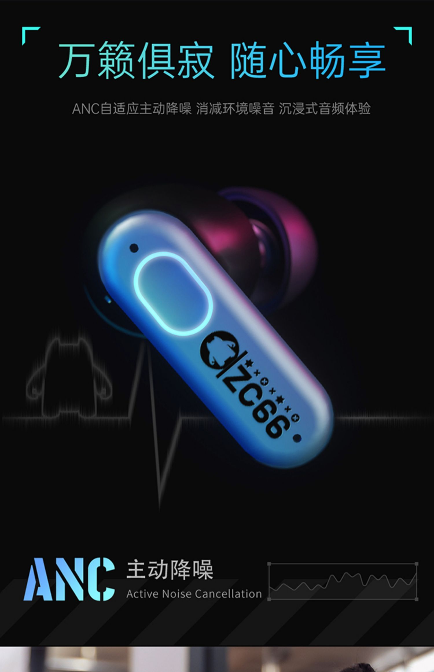 F-MGM-B5 青橙魔鬼猫休眠舱 主动降噪无线耳机
