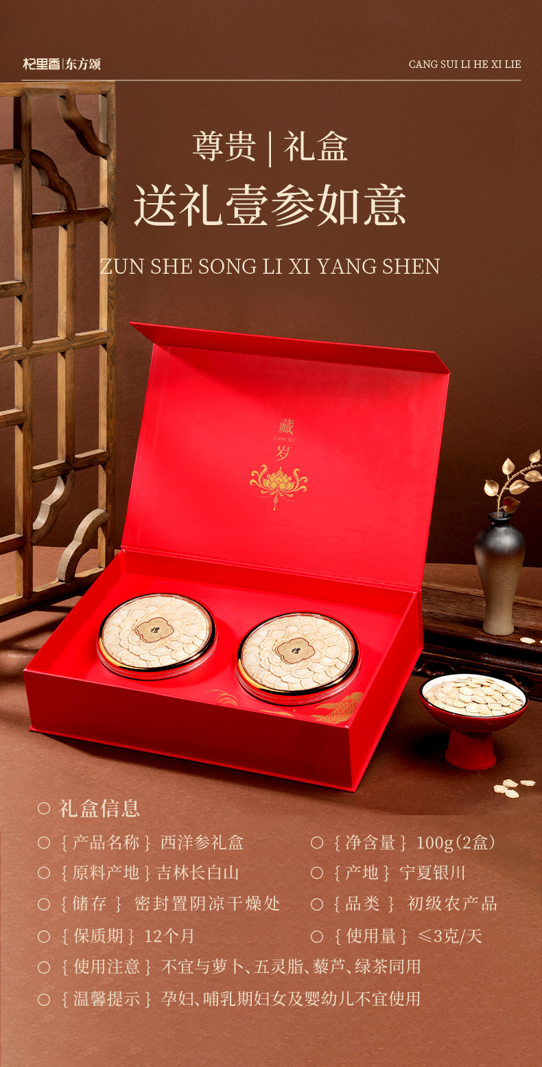【马年!双参送礼&参得人心】杞里香藏岁西洋参礼盒 100g 长白山西洋参片 0.6-0.8cm长辈节日送礼
