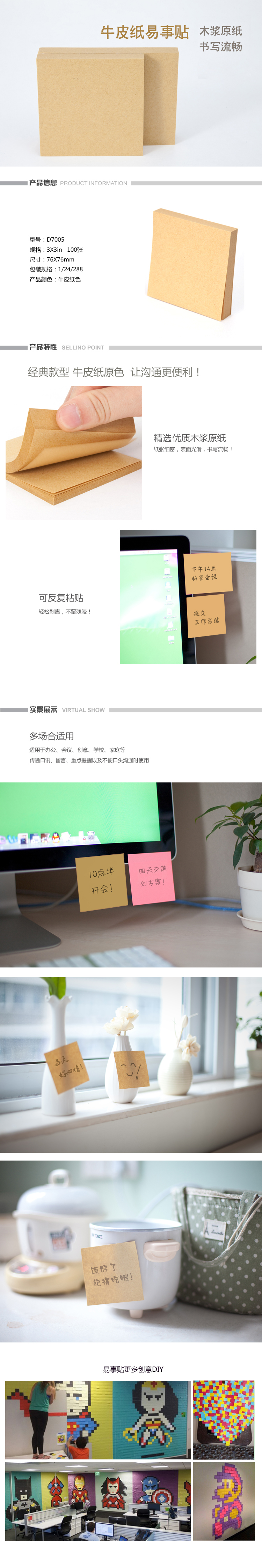 齐心牛皮纸便利贴 正方形易事贴办公留言记事告示贴N次贴便签纸3×3 100张/本