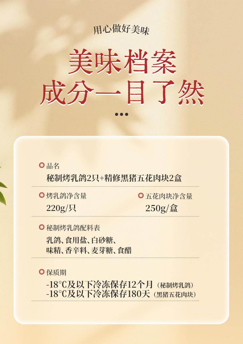 【杨博士自营 爆香鸽豚组】2只烤乳鸽+2盒黑猪五花肉块+赠1袋笋尖