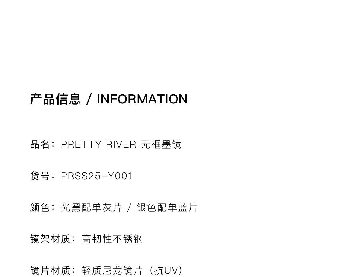 PRETTY RIVER无框墨镜