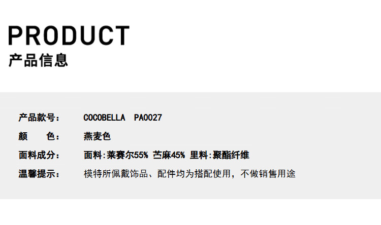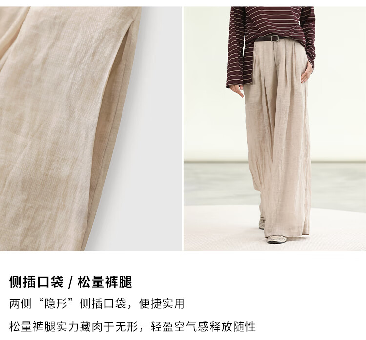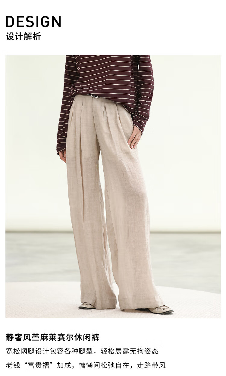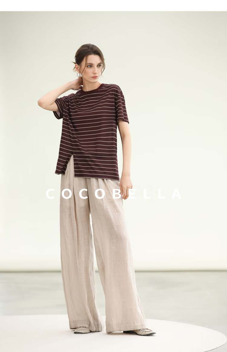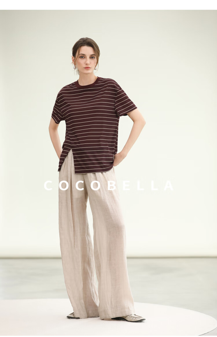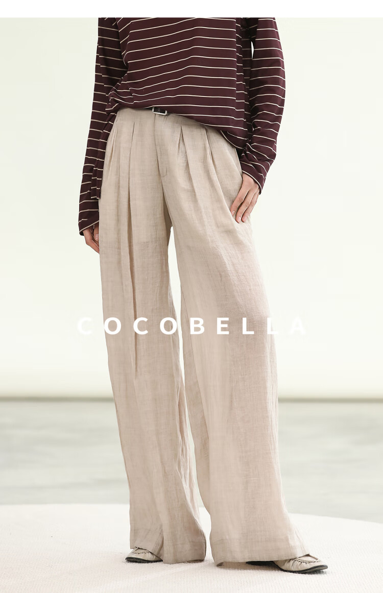 COCOBELLA苎麻莱赛尔慵懒休闲裤女25春古法染色阔腿裤PA0027-2