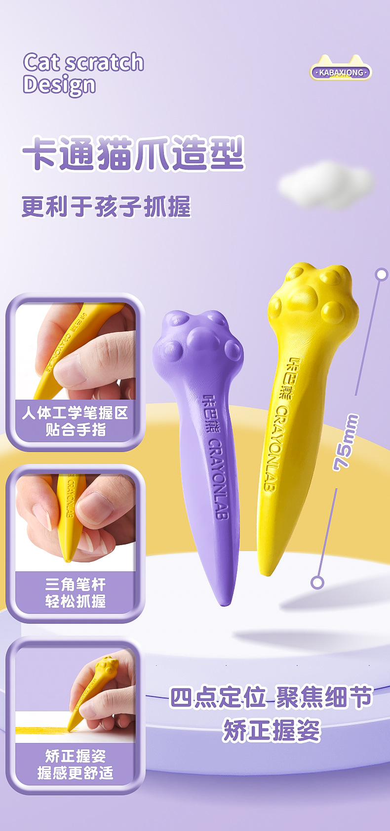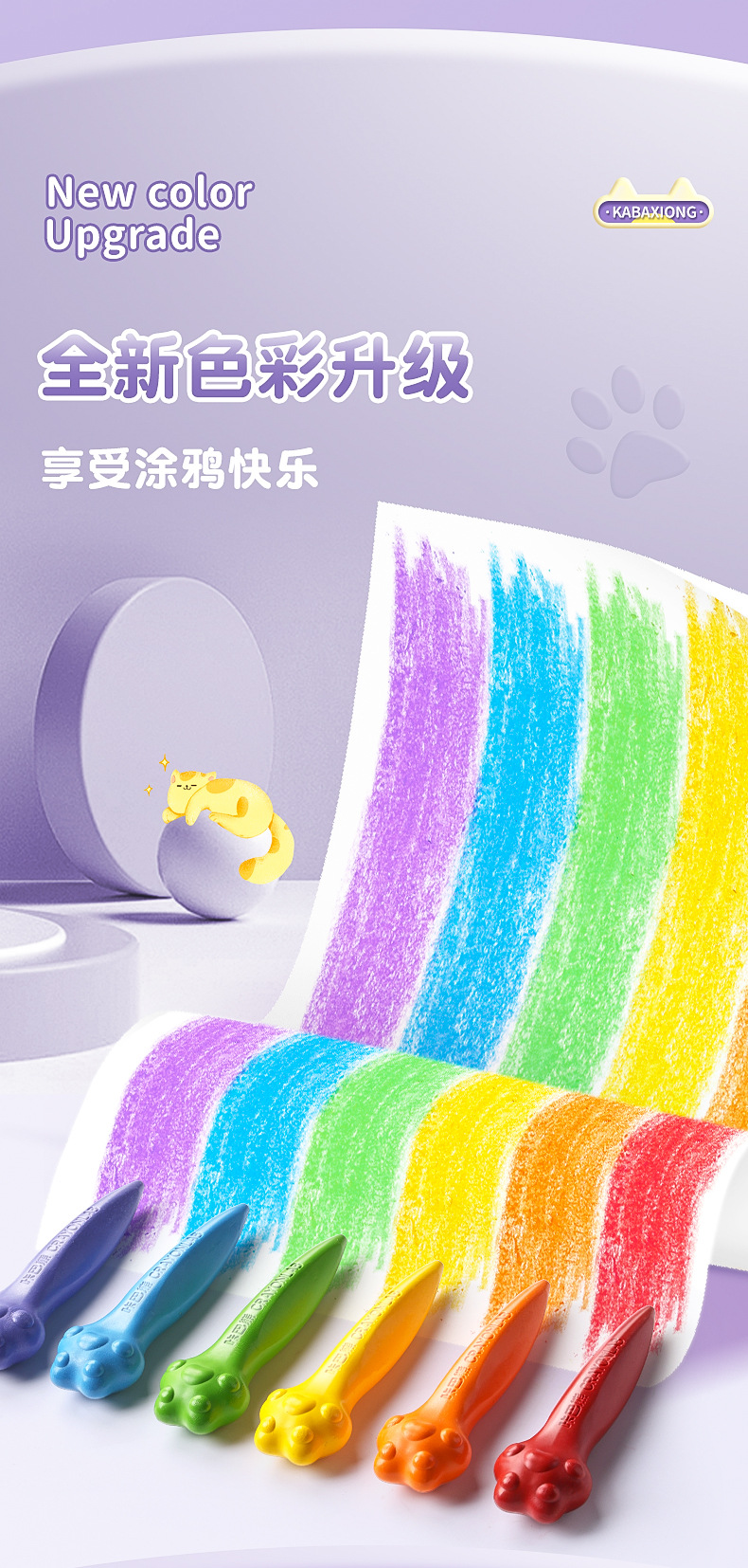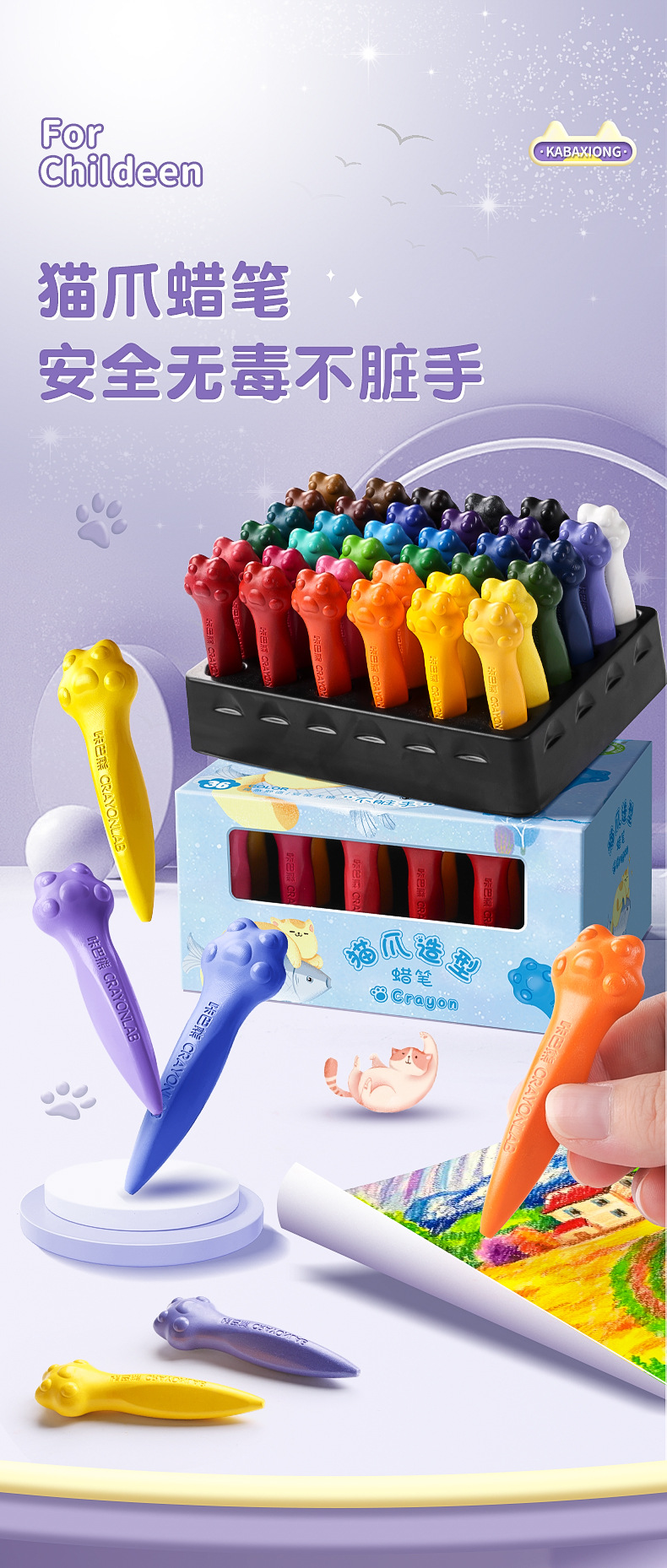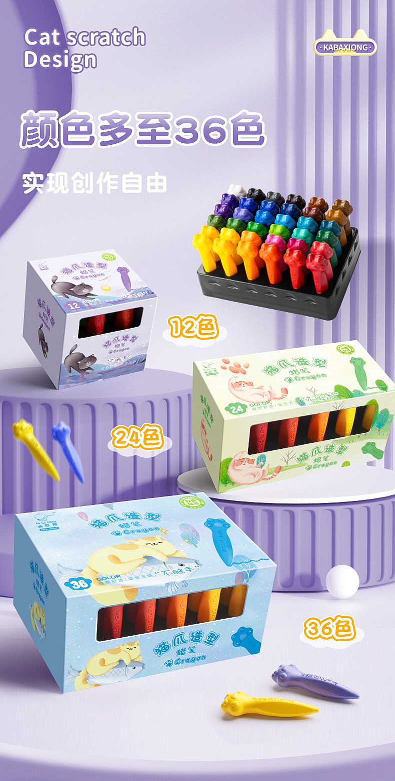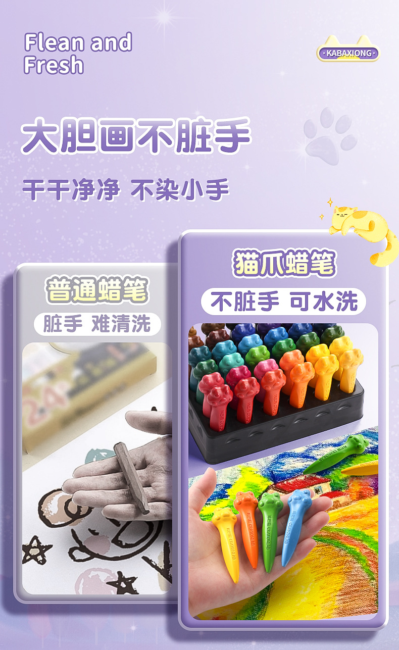 填色画本免费送【咔巴熊!儿童蜡笔36色绘画】儿童蜡笔,不脏手,可水洗,可爱猫爪外观,专为宝宝画画。萌宠造型,鲜艳色彩,让孩子们爱上美术!