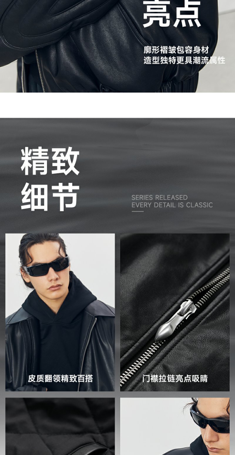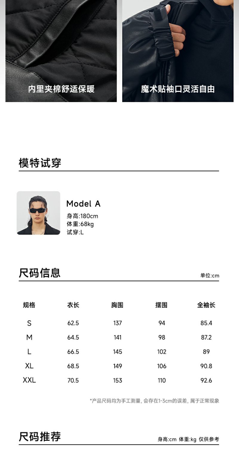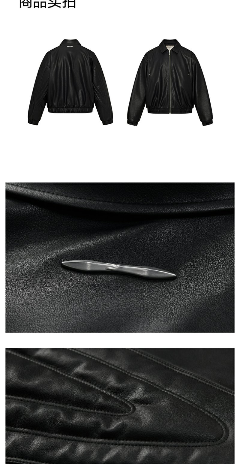 CHINISM赤尘 黑色环保皮夹克棉服男冬季美式夹棉加厚男士皮衣外套