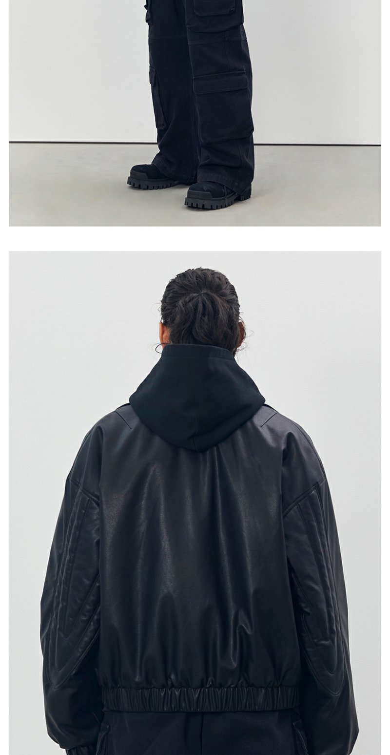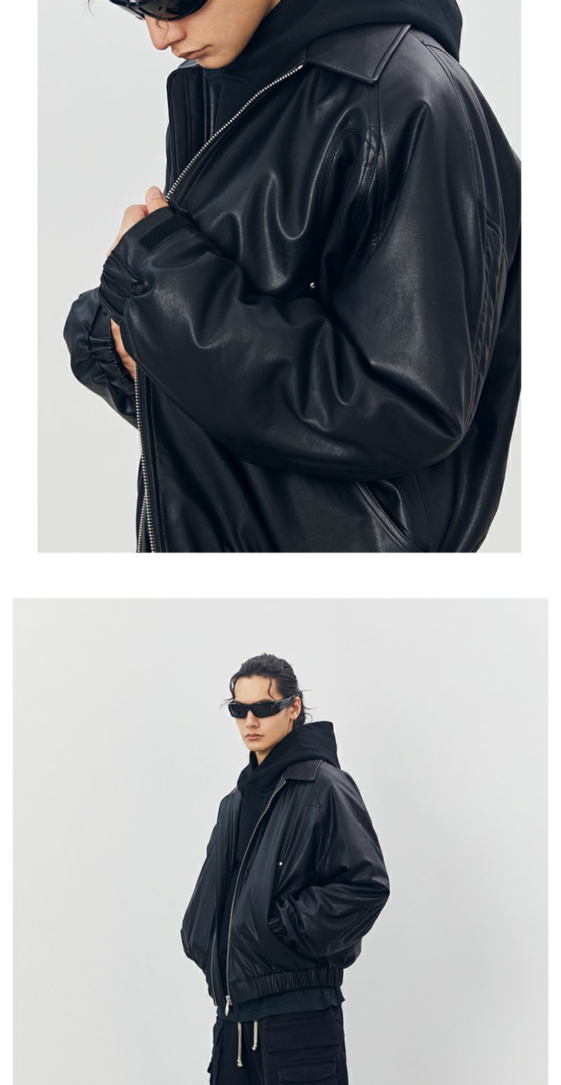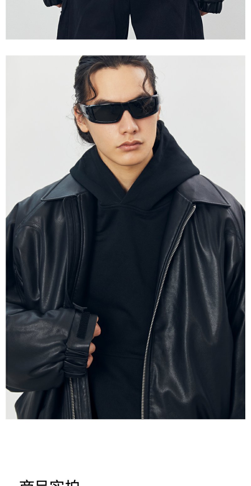 CHINISM赤尘 黑色环保皮夹克棉服男冬季美式夹棉加厚男士皮衣外套