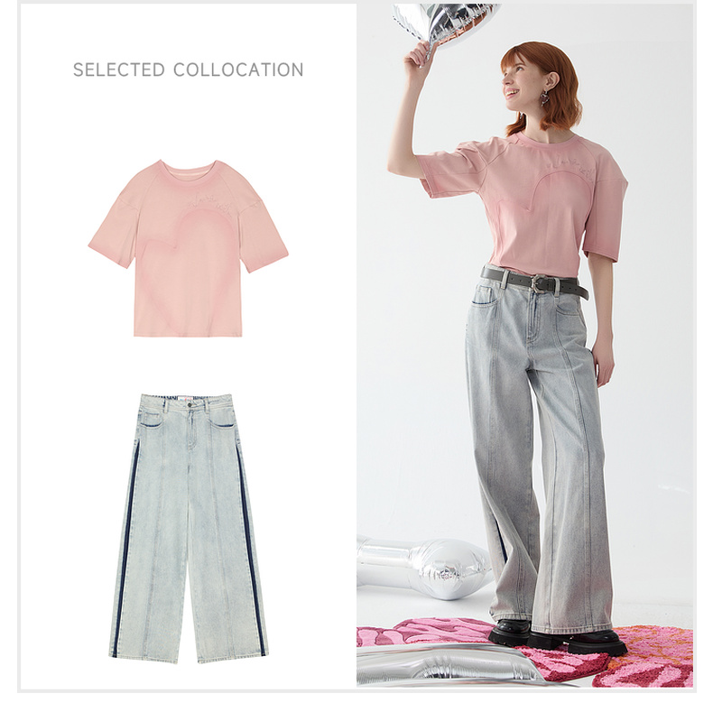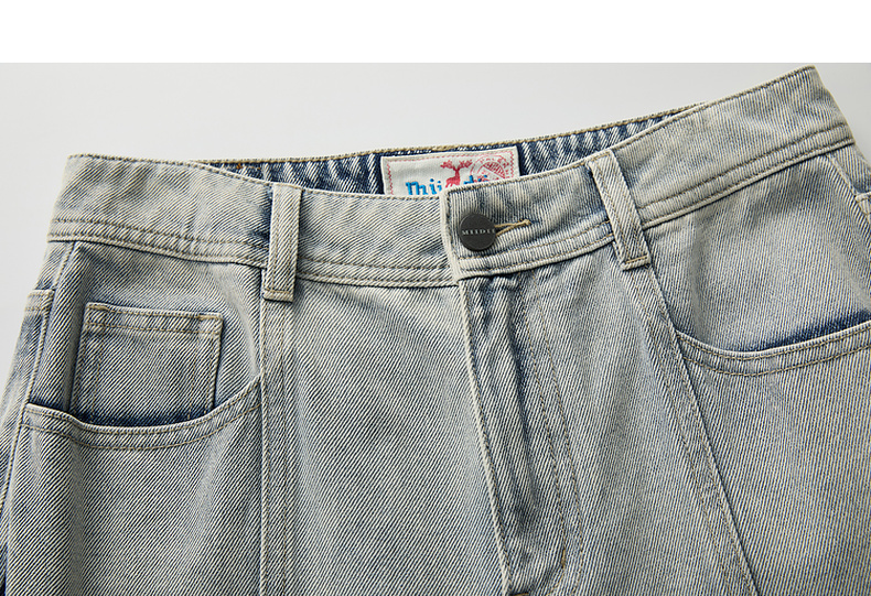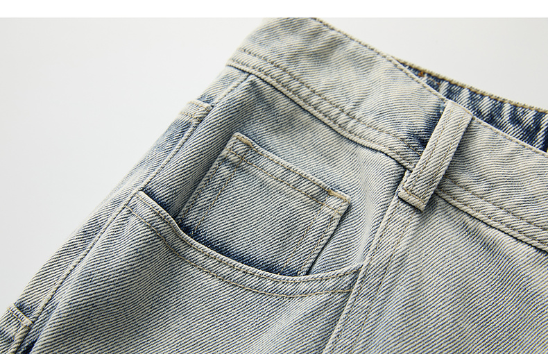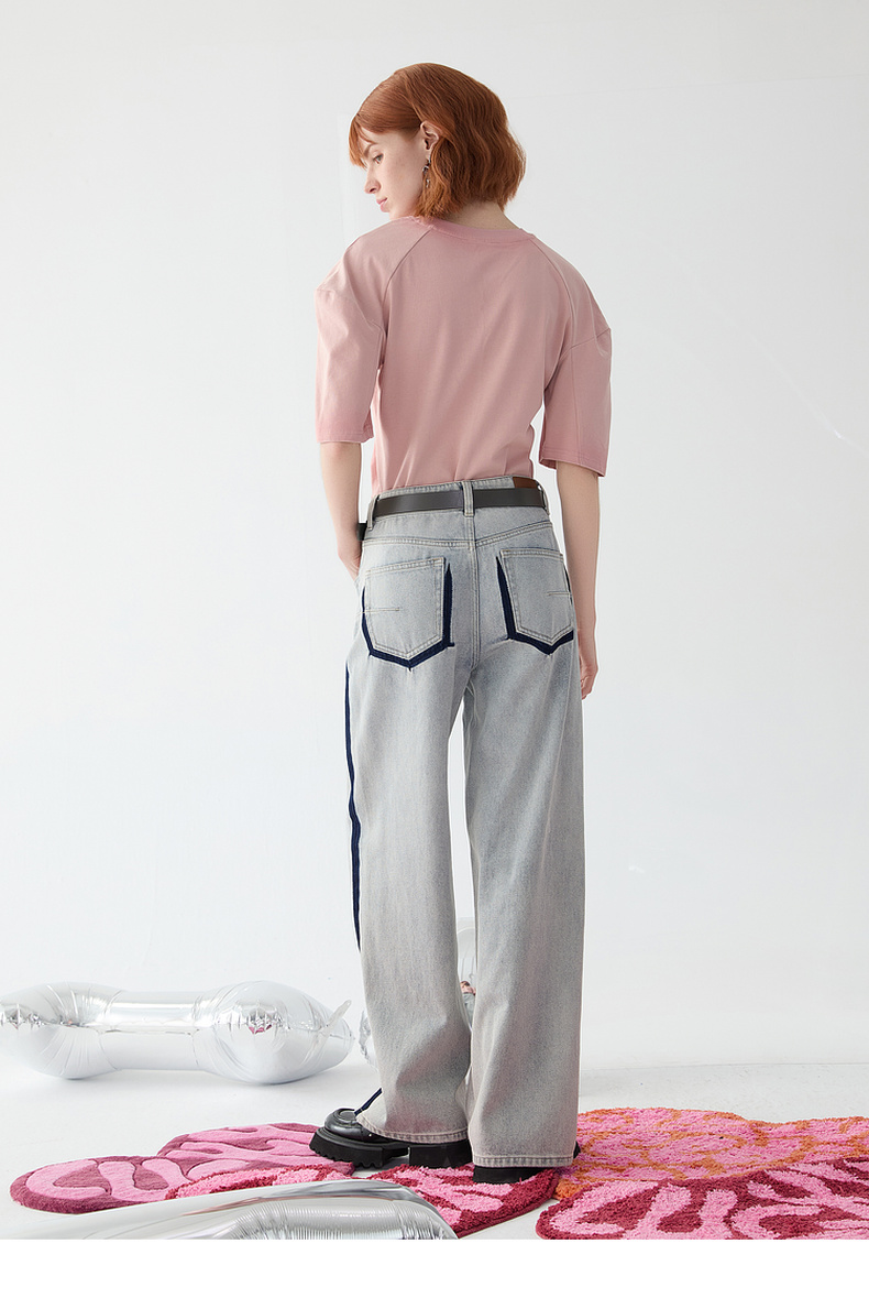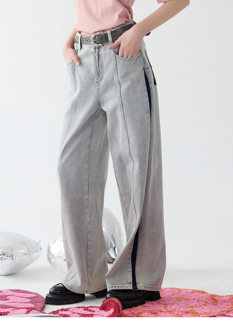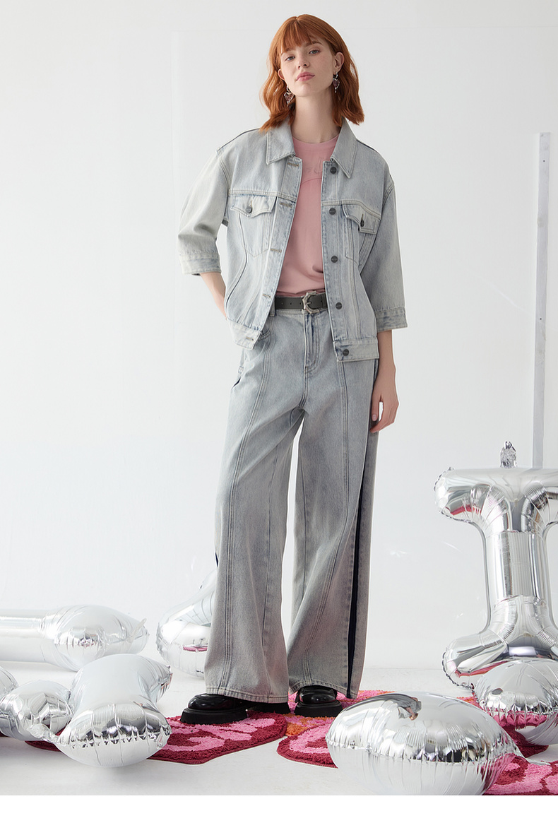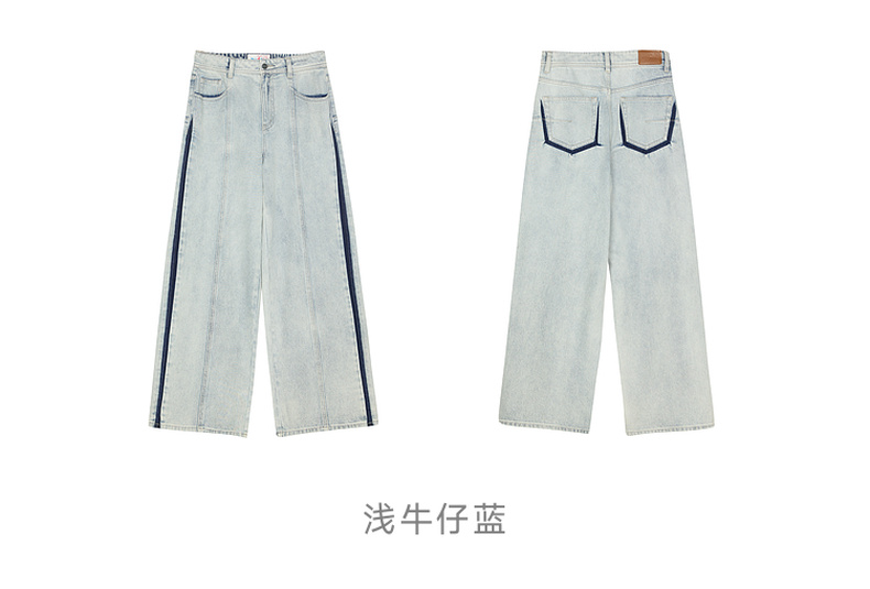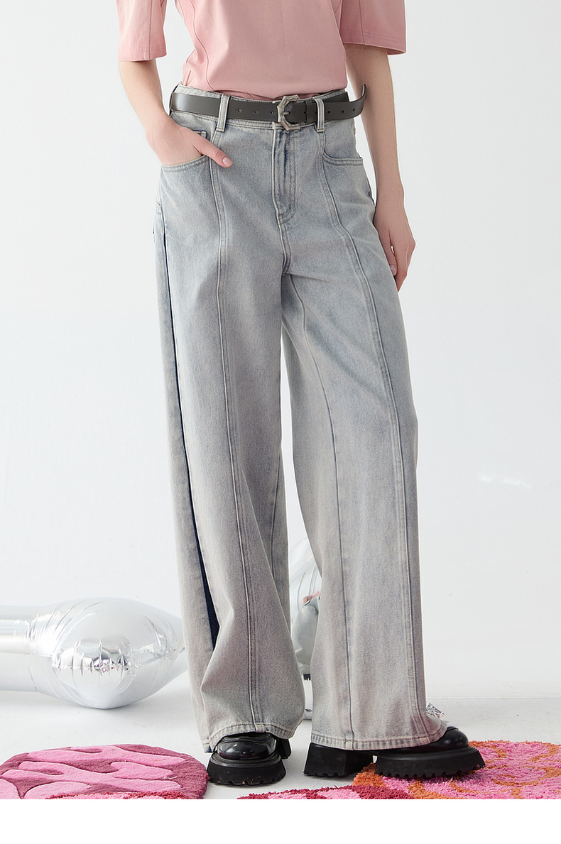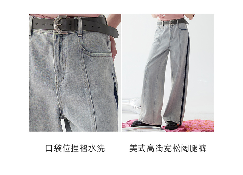 谜底牛仔阔腿裤女士2025春季新品复古风水洗棉浅色长裤251MK0047