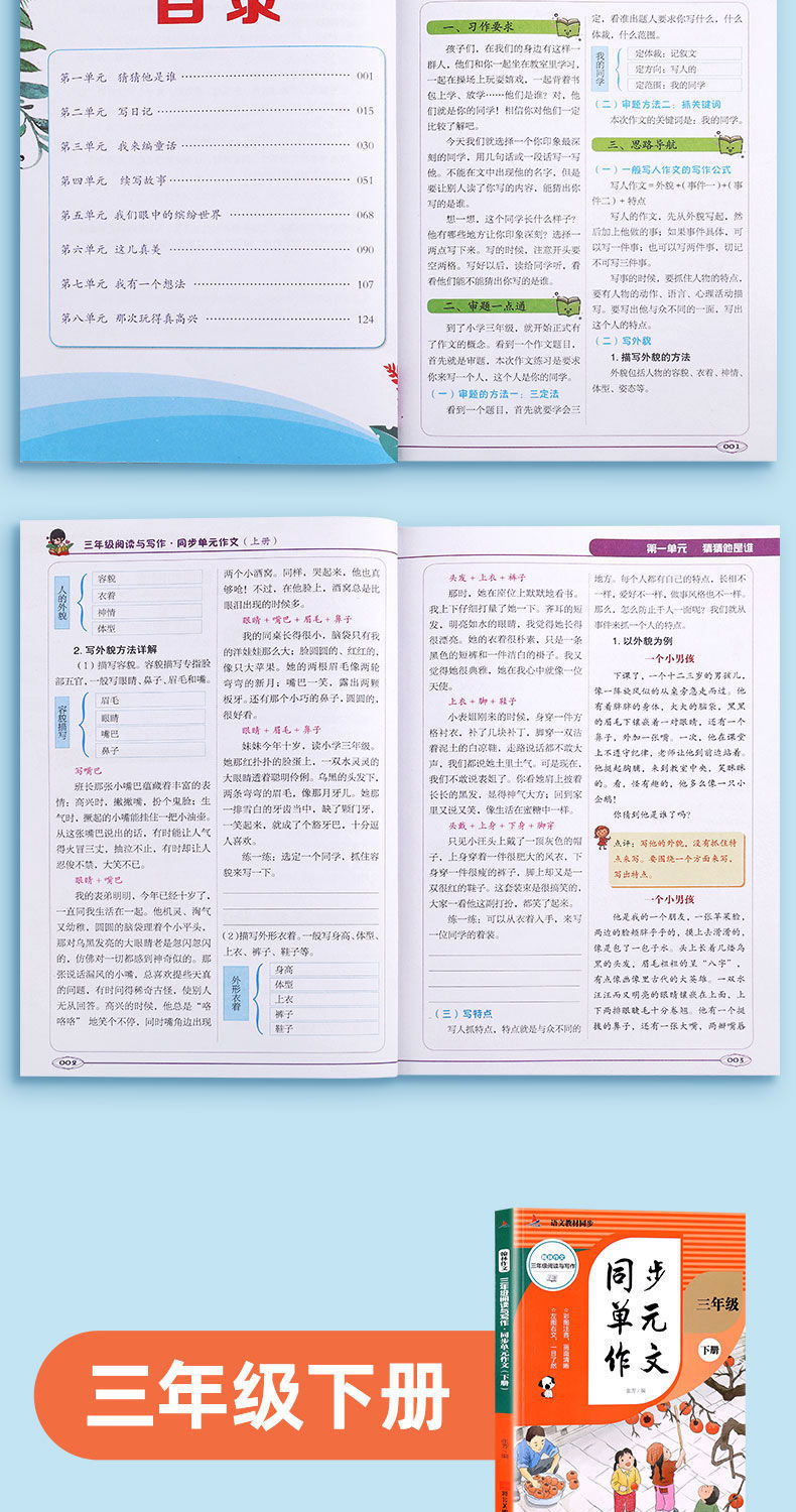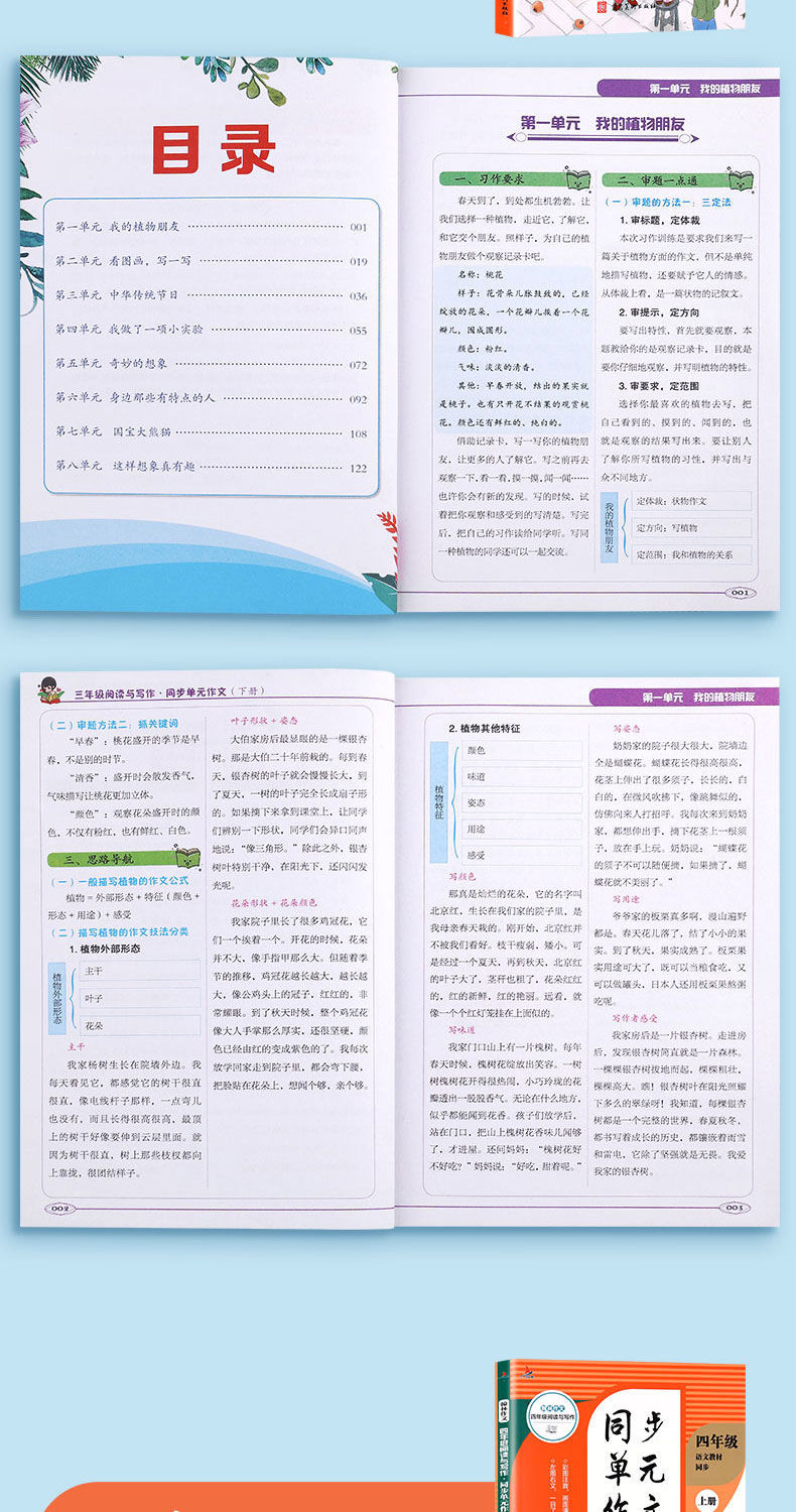 同步作文书小学生三四年级上册下册教材单元同步写作文入门参考书