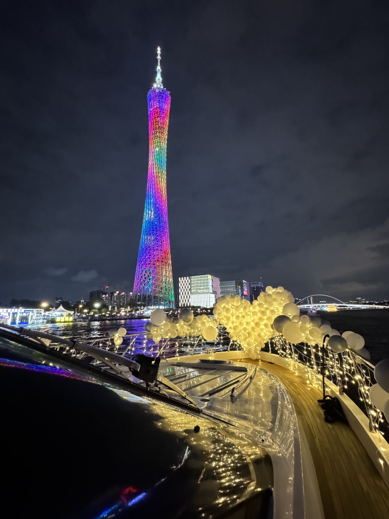 七十尺游艇提供了一个豪华且独特的夜游珠江之旅,上下三层可以令你观赏到360°珠江风景,还能在舒适奢华的环境中享受多种娱乐设施,这里是与朋友们尽情聊天,拍出美美照片和享受美好时光的绝佳场所(还可以自带酒水哦)