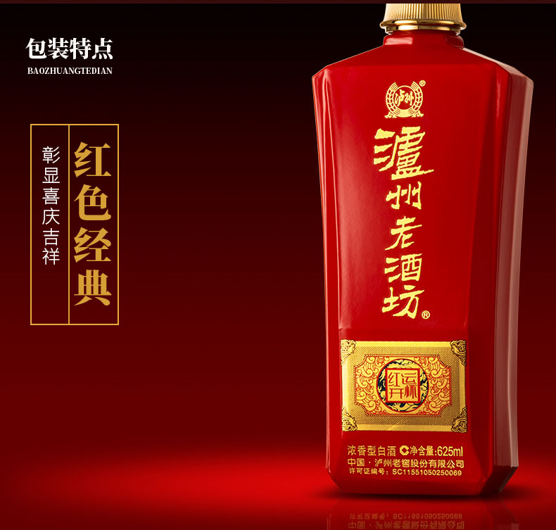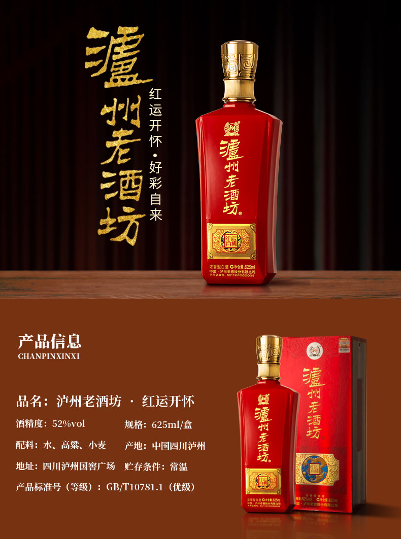 【泸州老窖酒名堂 会员日7折】52度 泸州老酒坊.红运开怀 625ml*6