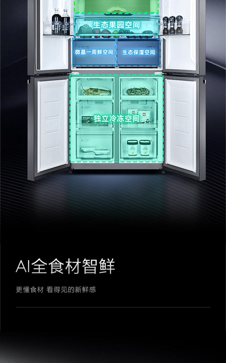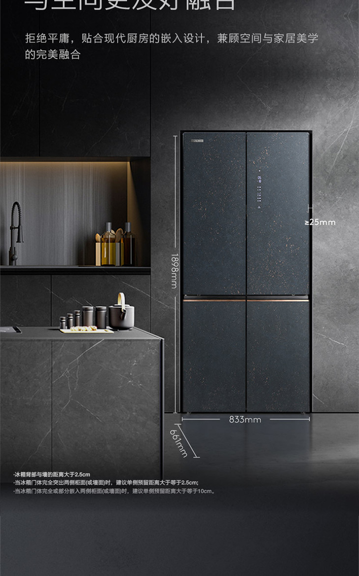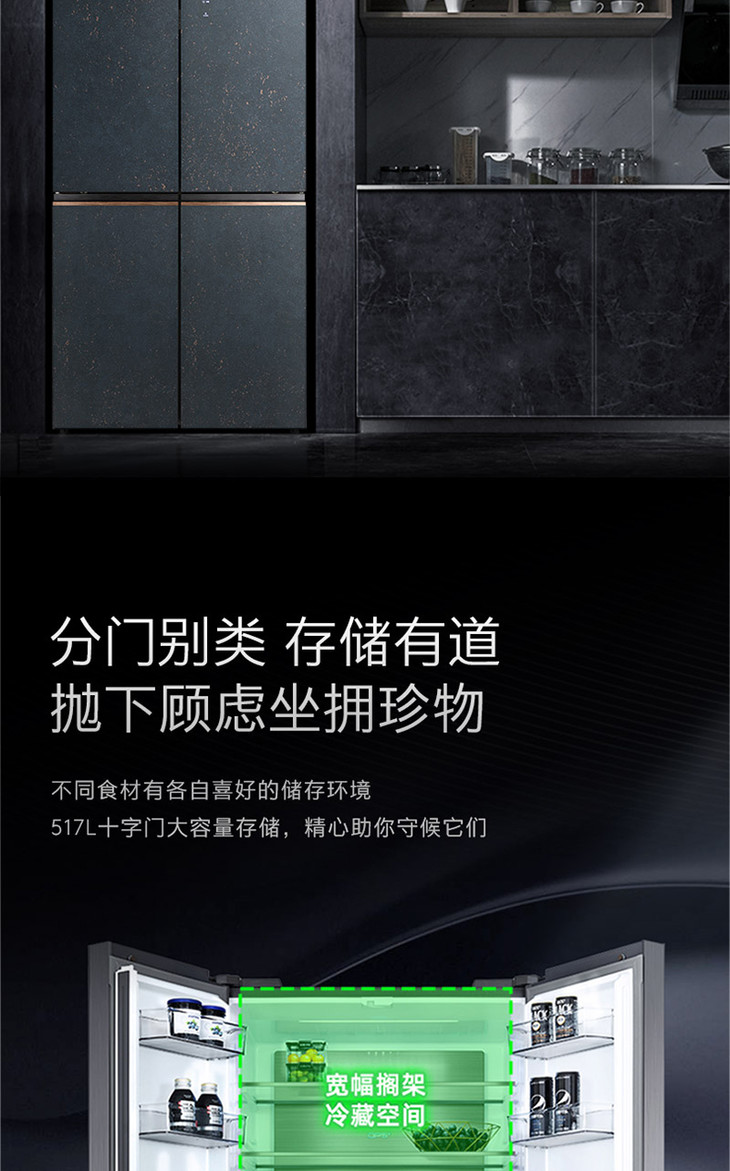 COLMO高端冰箱517升十字对开门 变频智能 微晶一周鲜 大容量CRBS517L-A2