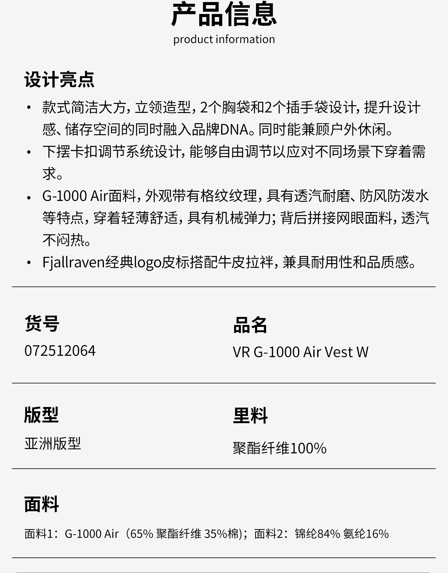 北极狐 女士户外运动马甲外套 2025新款徒步G1000上衣072512064
