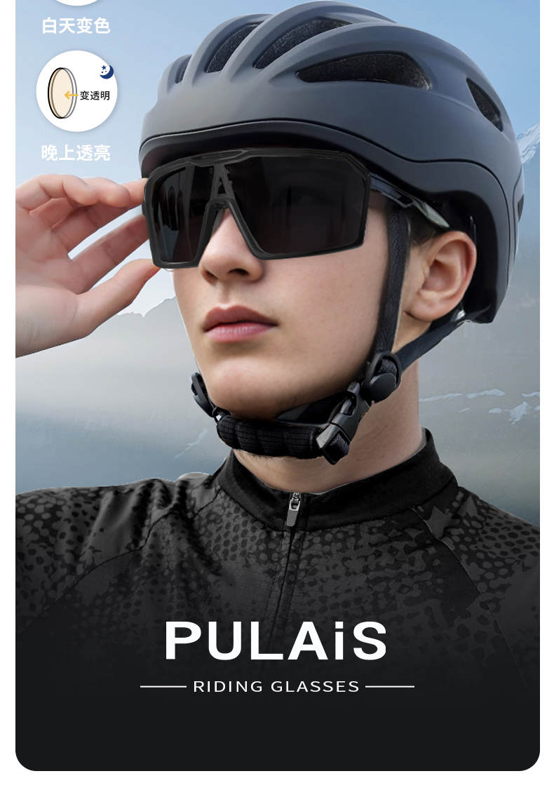 普莱斯骑行眼镜2147Y129A1 智能变色 全面屏镀膜技术 TR材质镜框 PC变色片 男女同款 双色可选