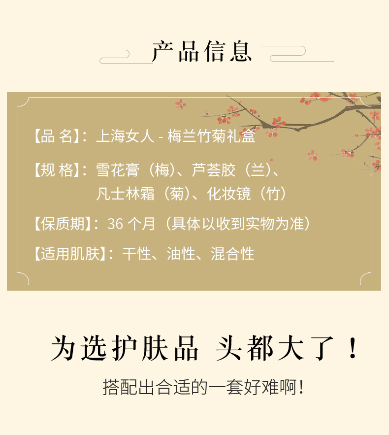 临期特价*26年12月*上海女人梅兰竹菊护肤套装礼盒