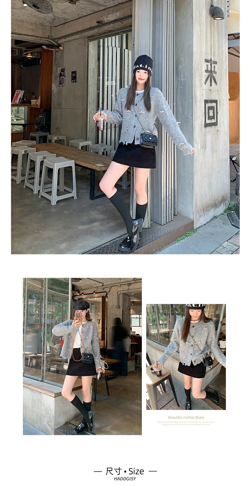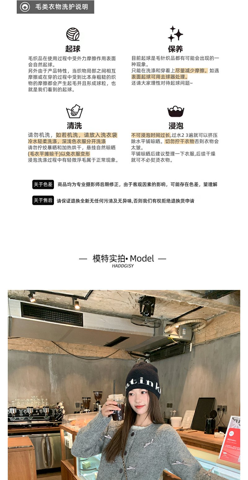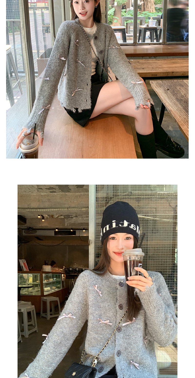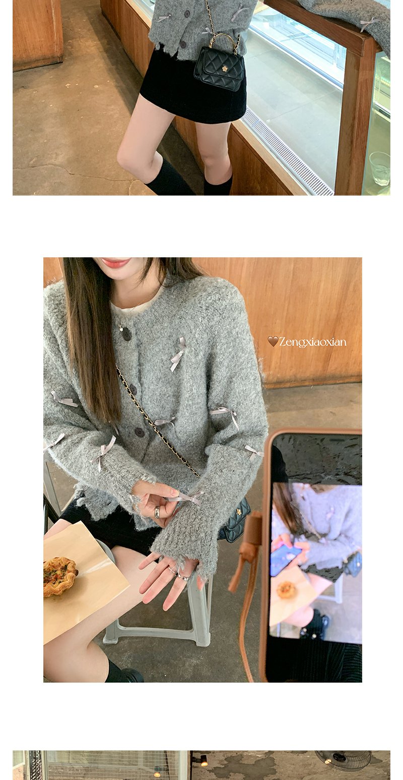 <曾小咸推荐>百搭深灰色蝴蝶结毛衣开衫