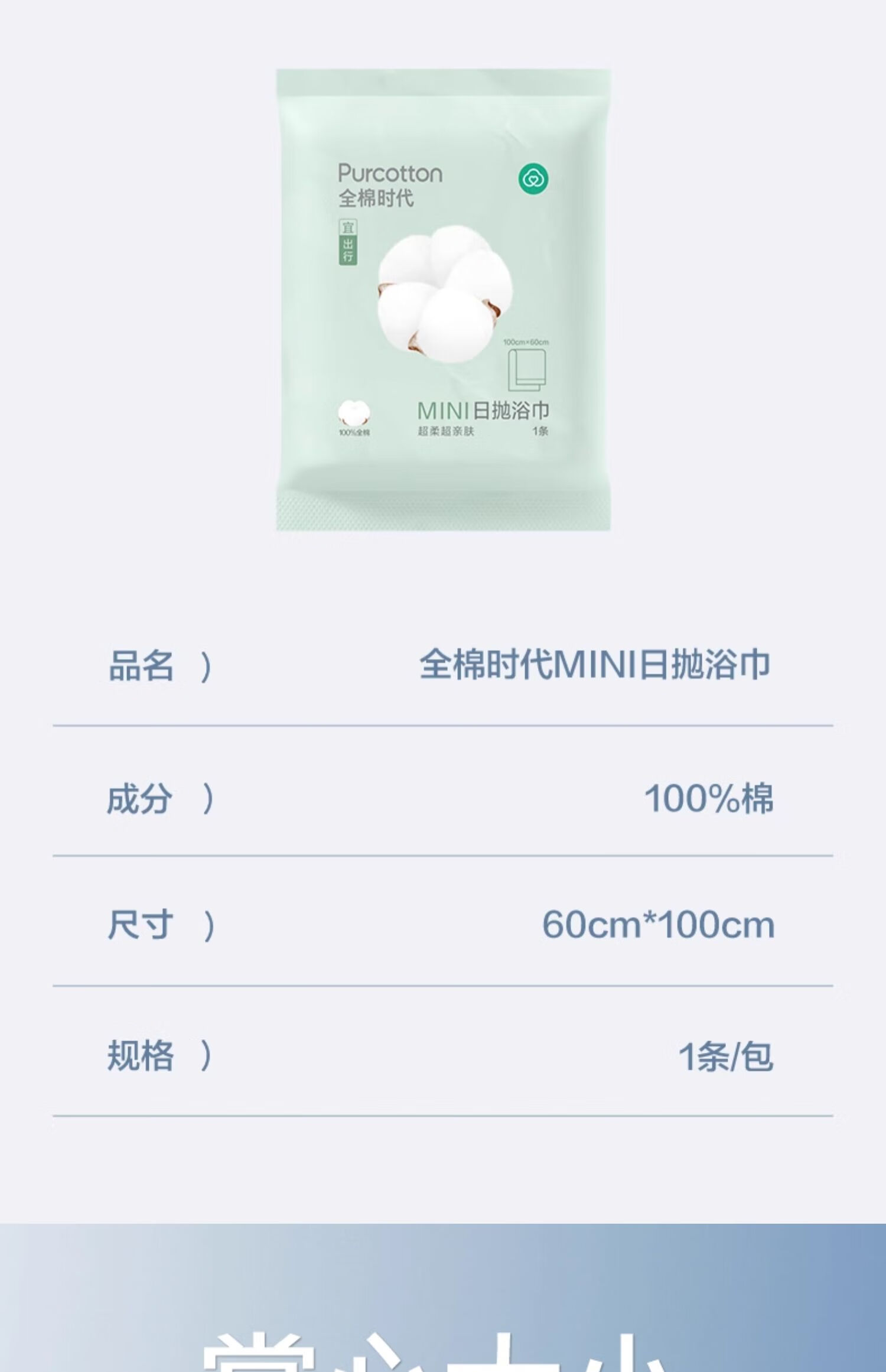 全棉时代MINI日抛浴巾 便携浴巾提花纹浴巾 60*100cm 1条/包*5包/组