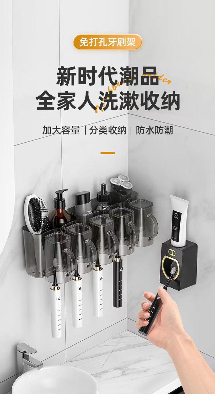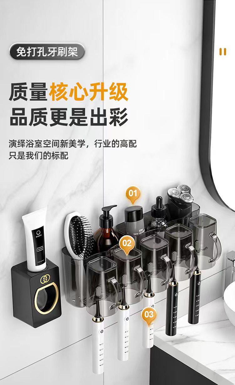 【杯子+杯架】牙刷置物架免打孔漱口杯刷牙杯子卫生间挤牙膏神器牙刷杯牙杯套装 ybtz11