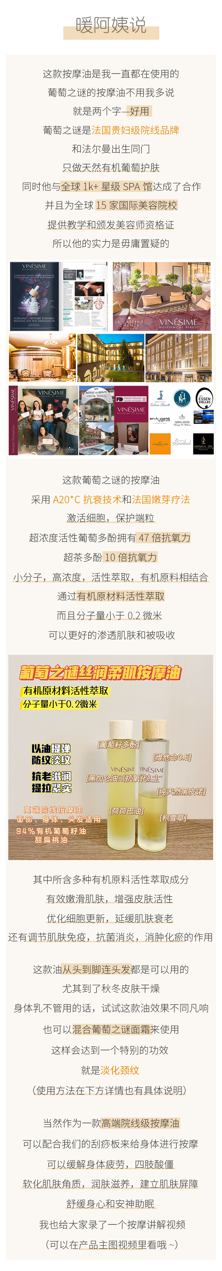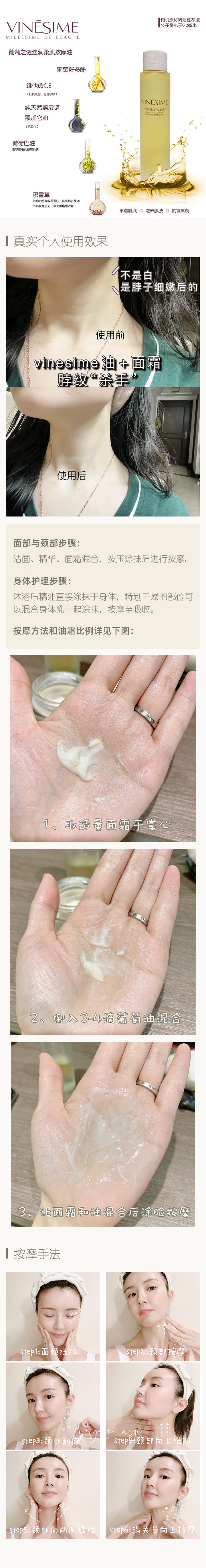 【淡化颈纹 全身使用 滋养头发】油养女人!法国高端院线 Vinesime葡萄之谜有机葡萄精华按摩油 15ml/100ml 法国