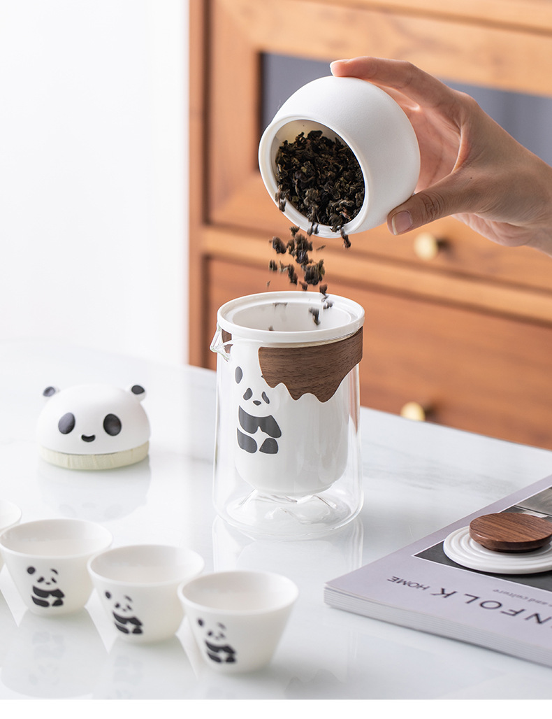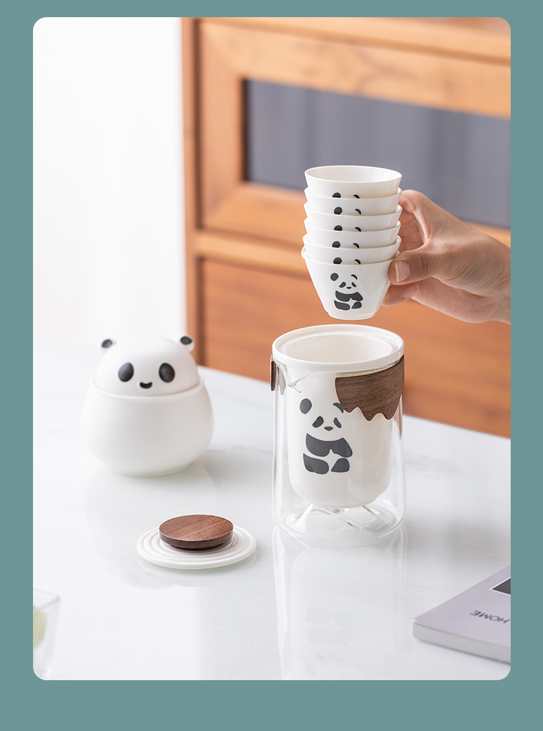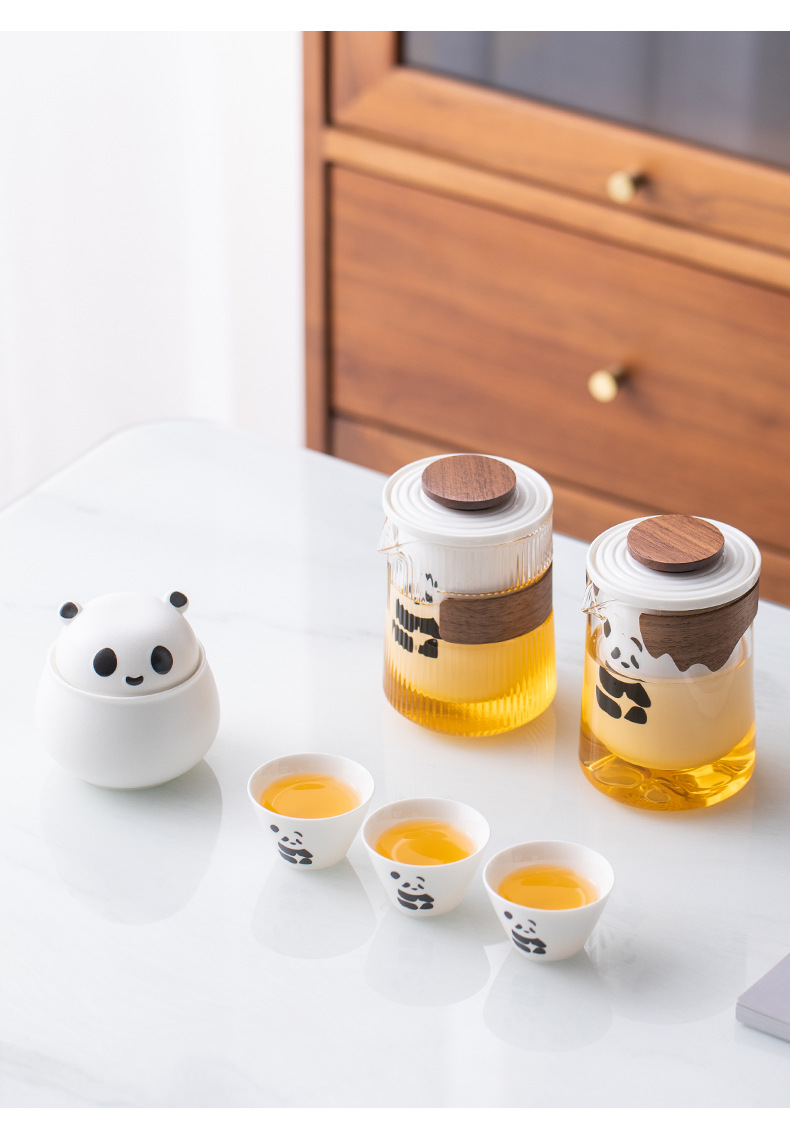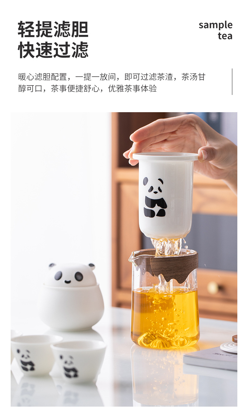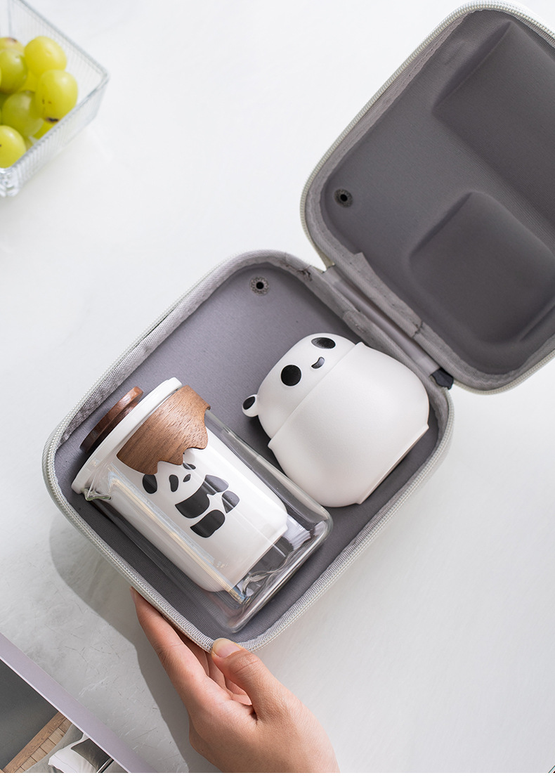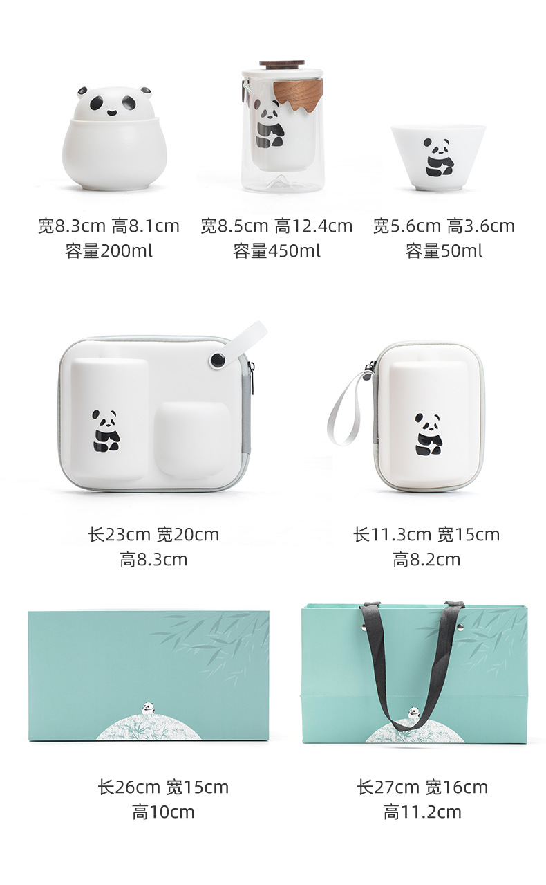 【旅行便携!熊猫茶具套装】快客杯户外旅行茶具套装便携式随身泡茶壶陶瓷礼品活动伴手礼