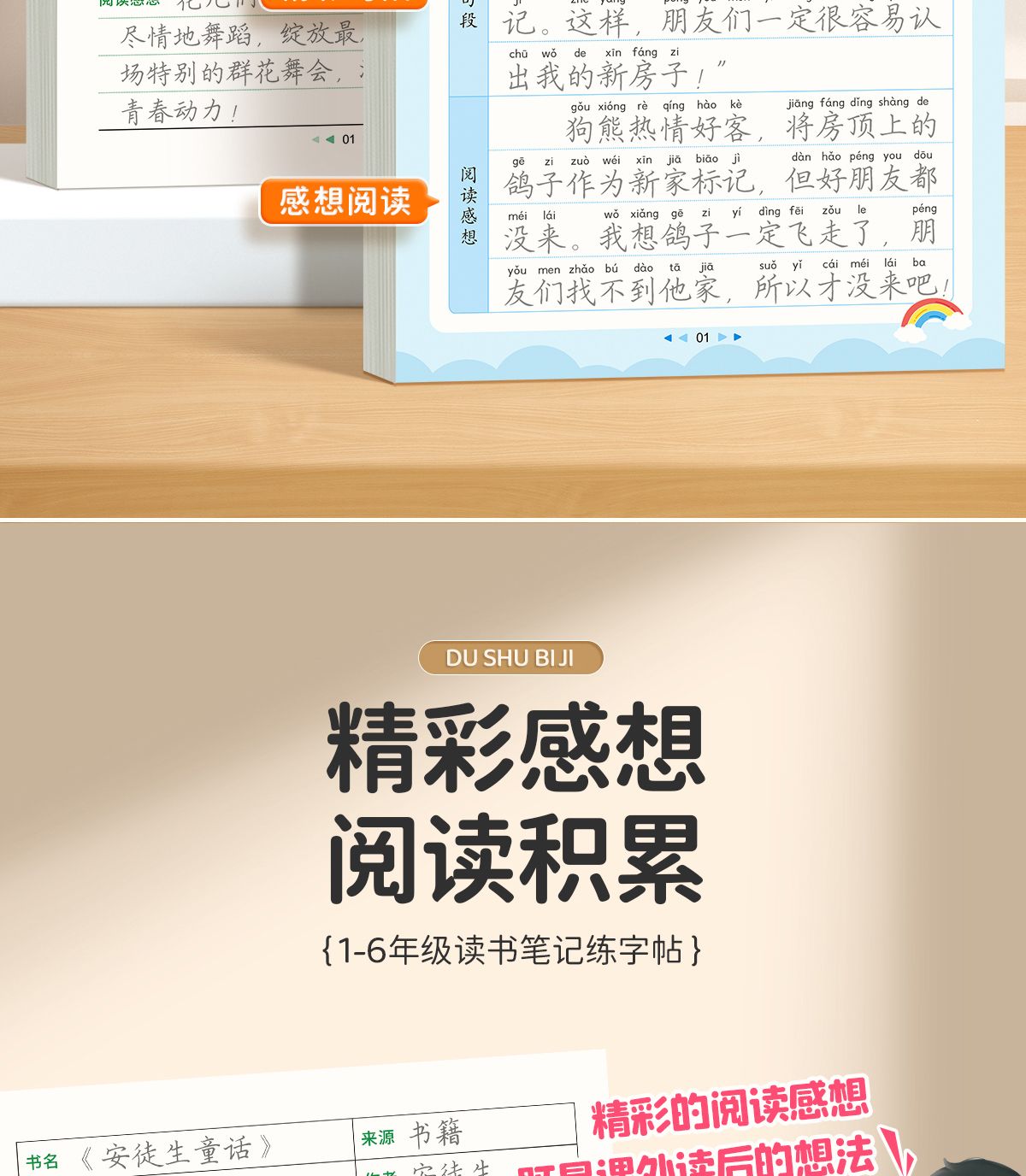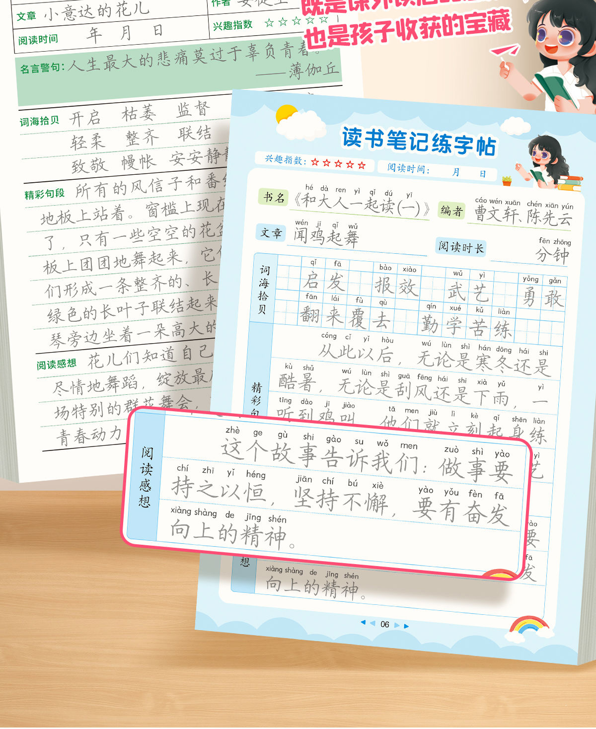 读书笔记本小学1-6年级语文【快乐读书吧】指定书目读后感好词好句摘抄本阅读记录专用本练字+学习