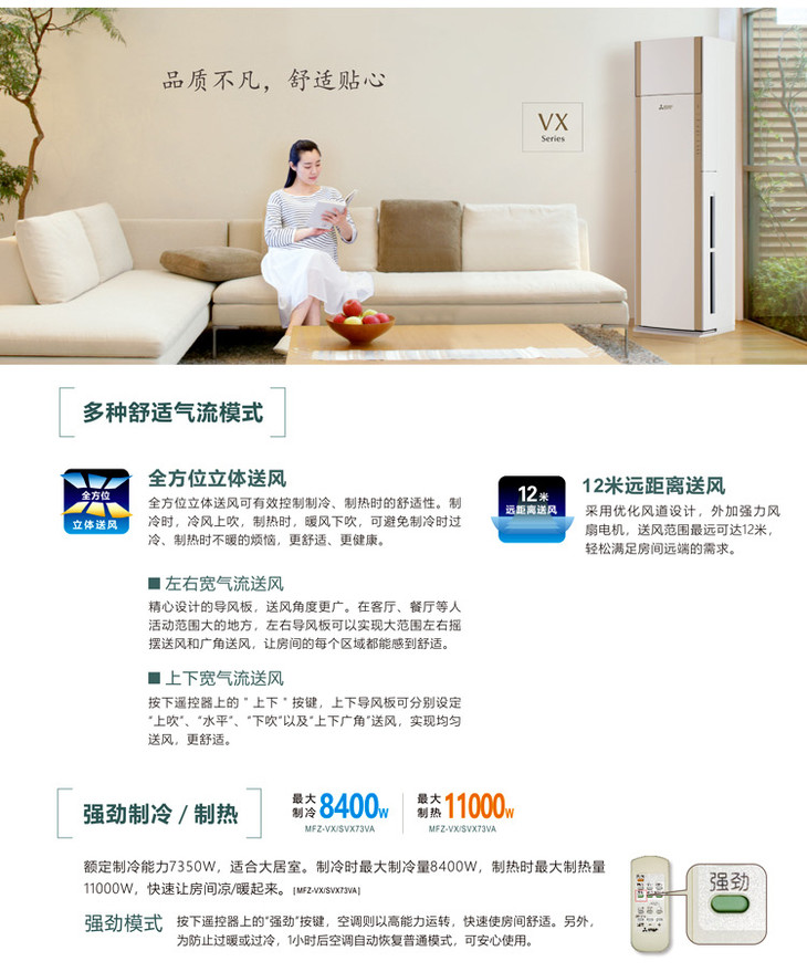 三菱电机3匹 新2级能效 变频冷暖 空调柜机 MFZ-SVX73VA(银)