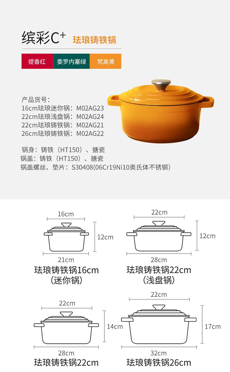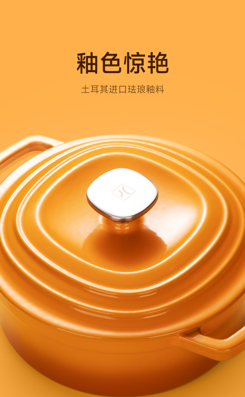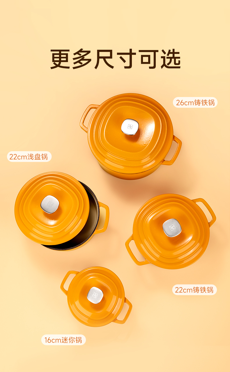 美珑美利迷你珐琅铸铁锅黄色16cm(无货退款)