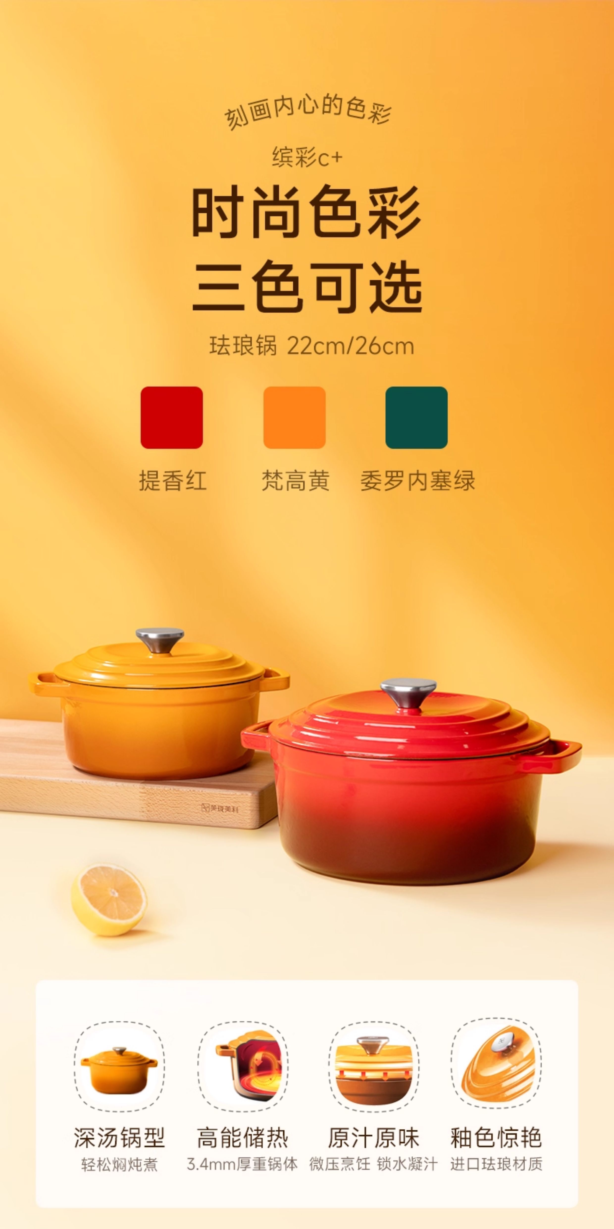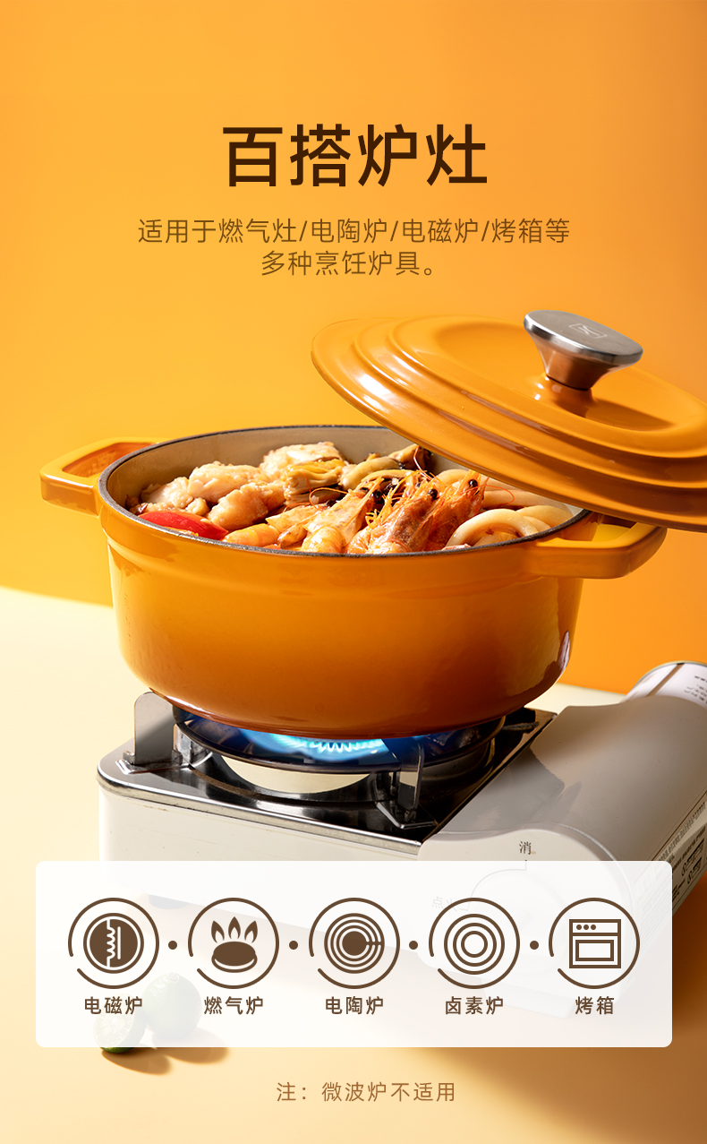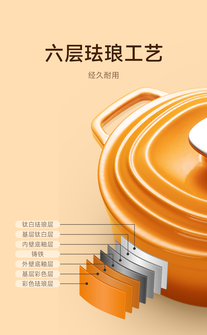 美珑美利迷你珐琅铸铁锅黄色16cm(无货退款)