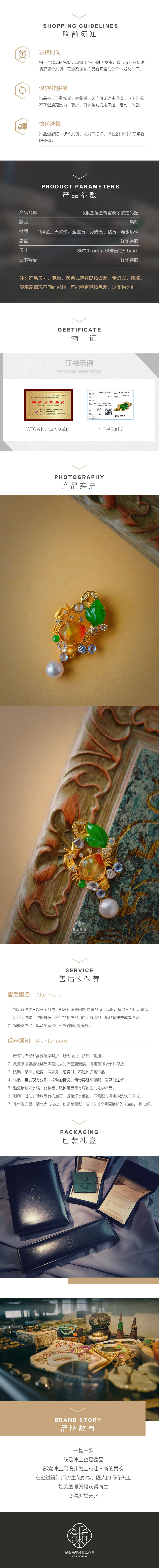 龢盒原创 18k金镶金钱蟹欧珀翡翠吊坠