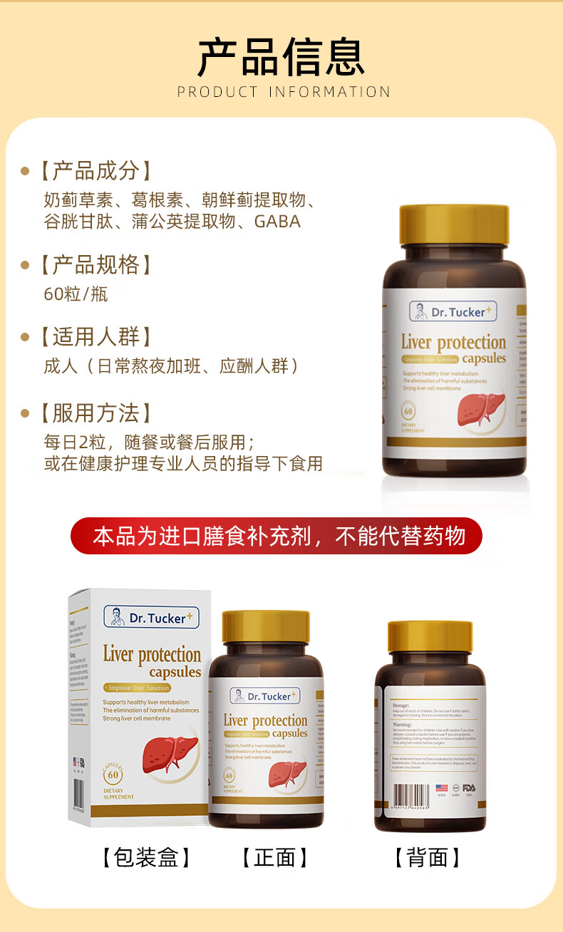 【进博会特邀】4粒可解酒!DR.TUCKER塔克瑞博士 护肝解酒 熬夜压力大 60粒/瓶