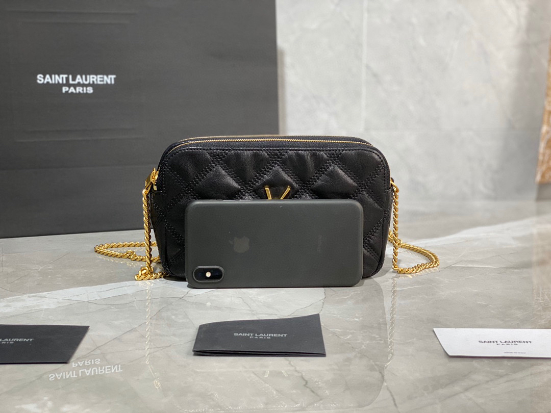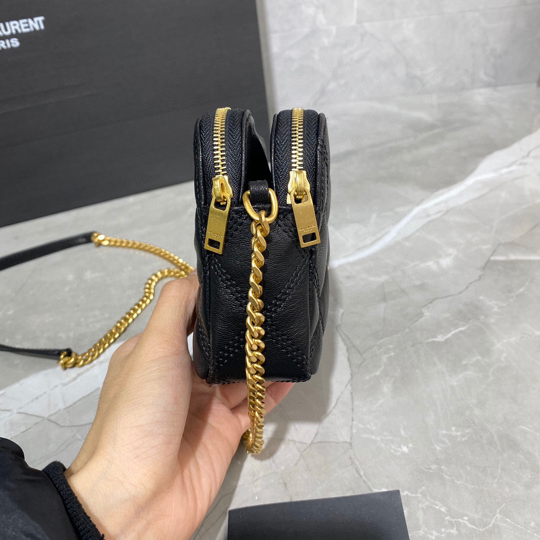 BECKY 菱形绗缝双拉链手拿链条包-黑色