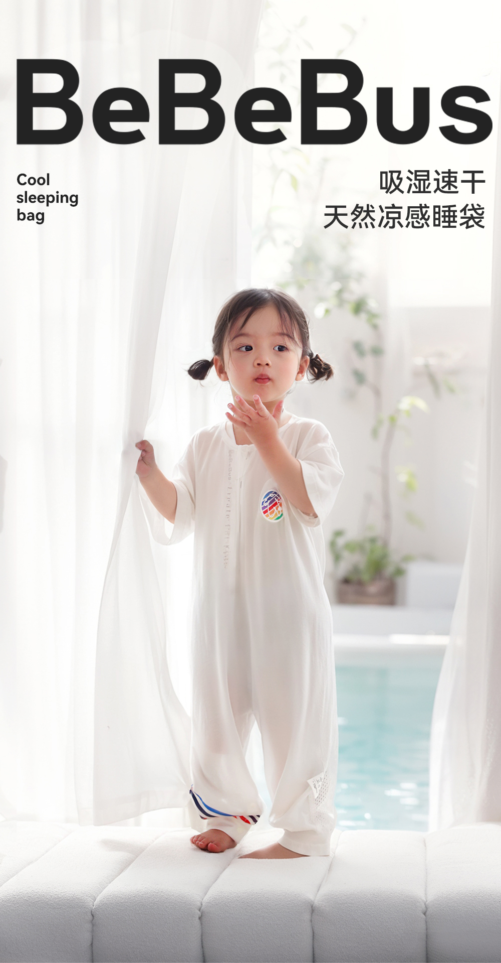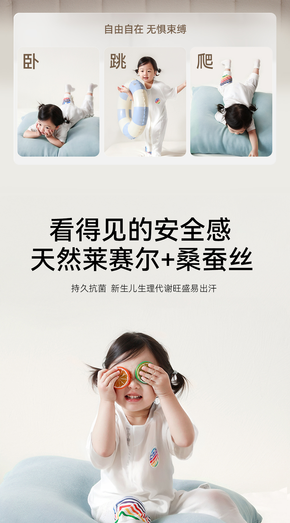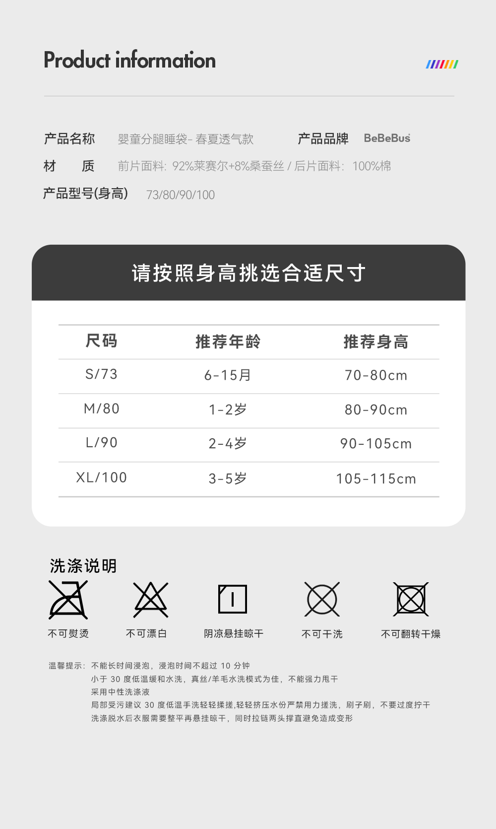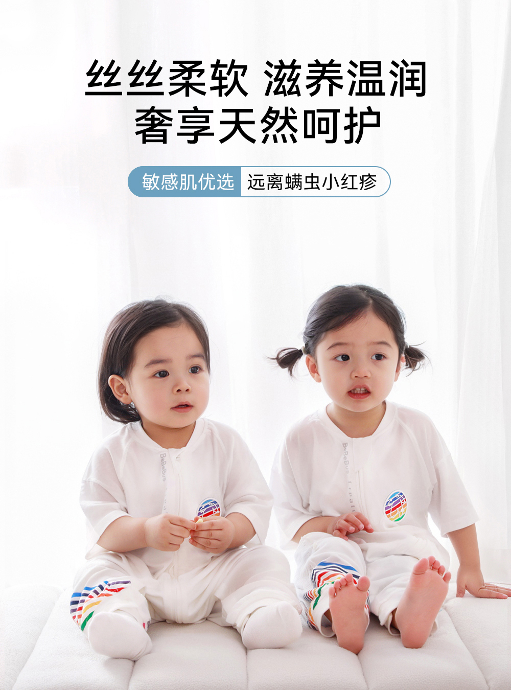 BeBeBus的确凉 婴儿睡袋桑蚕丝夏季薄款 分腿短袖 宝宝防踢被