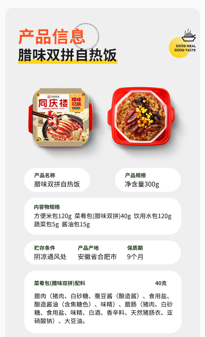 【数量拍3,单盒仅16.6元】同庆楼|腊味双拼自热饭300g/盒