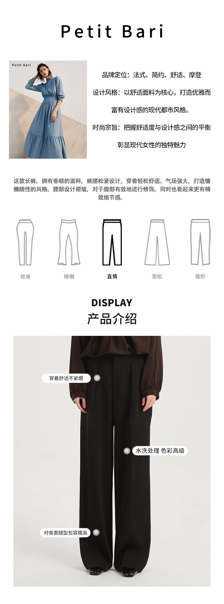 【2件9折】【Petit Bari】(多色)直筒阔腿休闲长裤简约通勤风显瘦百搭高腰