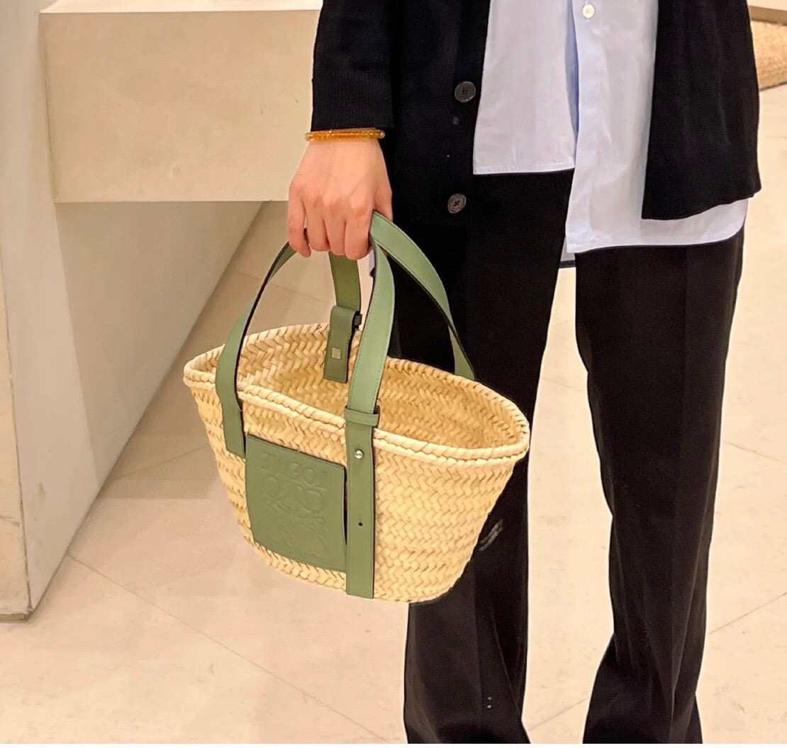 正宗马来西亚🇲🇾棕榈叶火爆到疯狂的草编包,具有经典手工编织包的传统水桶包,搭配精美制作的小牛皮手柄。可肩背或手提[玫瑰]可调节手柄,Anagram立体压纹拼皮,由于手工制作,每个包皆独一无二,尺寸可能粗略不同[勾引]