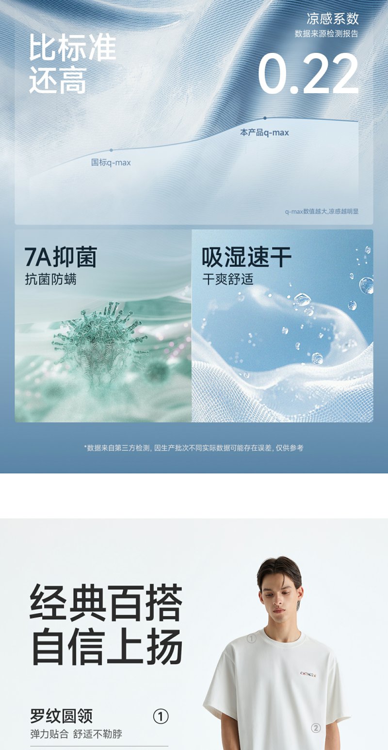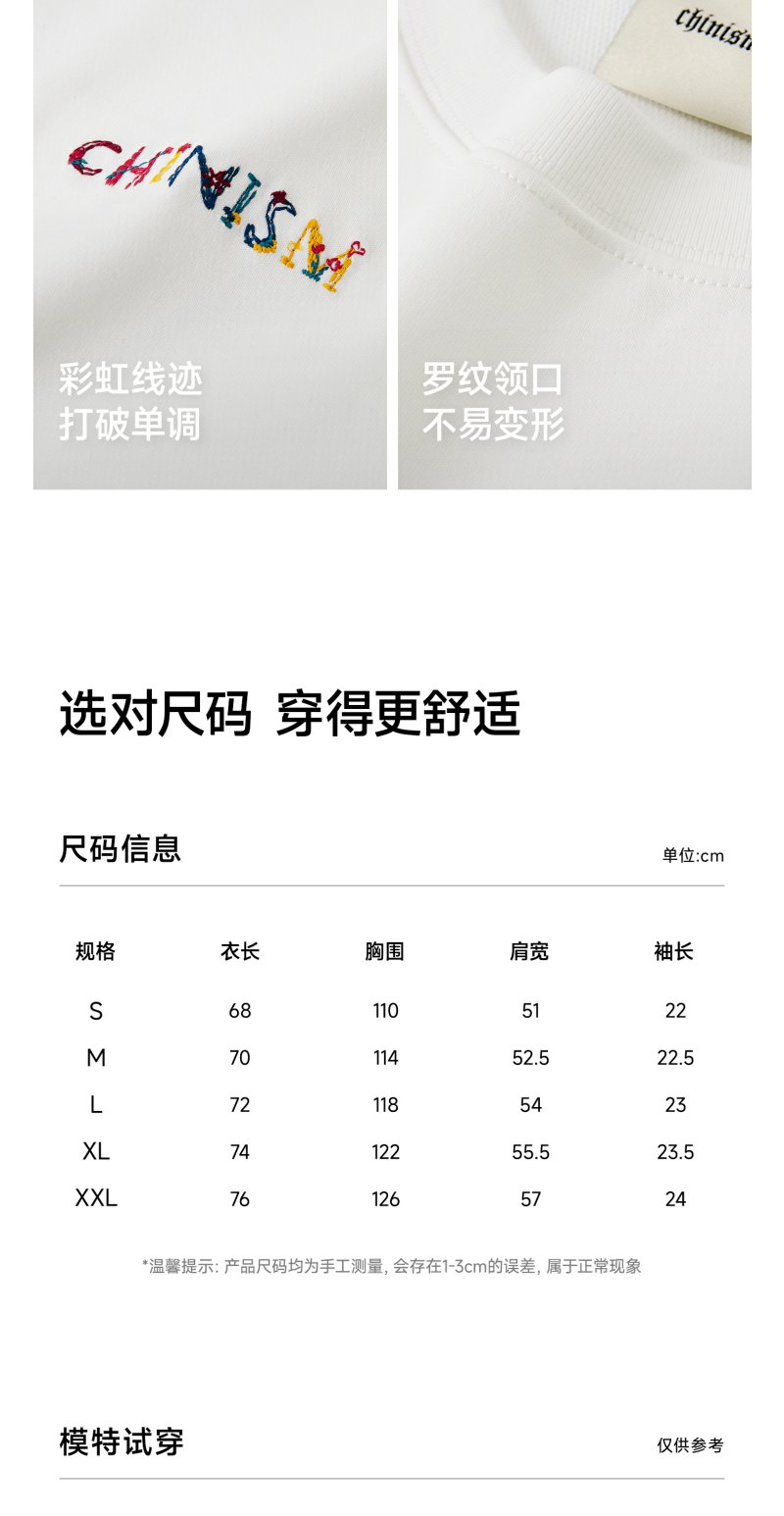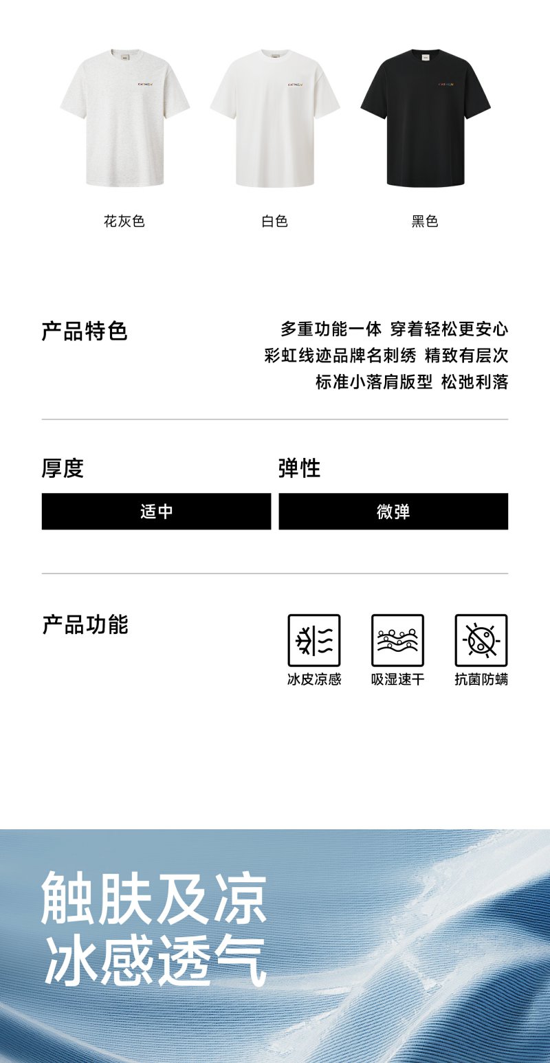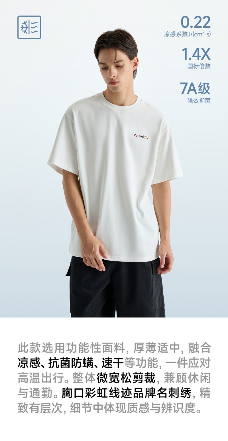 【凉感】CHINISM赤尘 彩虹刺绣短袖T恤男夏季男士速干白色半袖