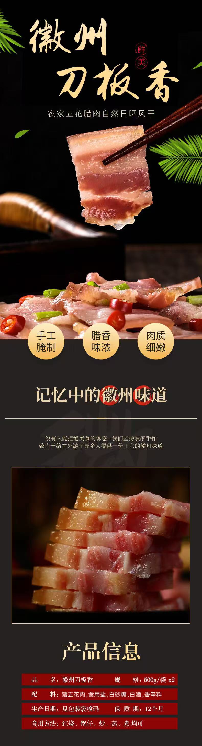 【徽望】徽州土猪刀板香(500g/袋*2袋)