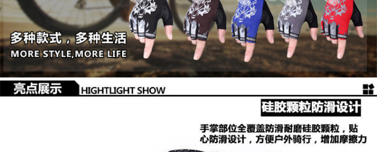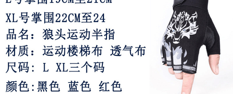 【运动装备】-狼头全指薄款骑行动感单车健身哑铃登山户外半指手套
