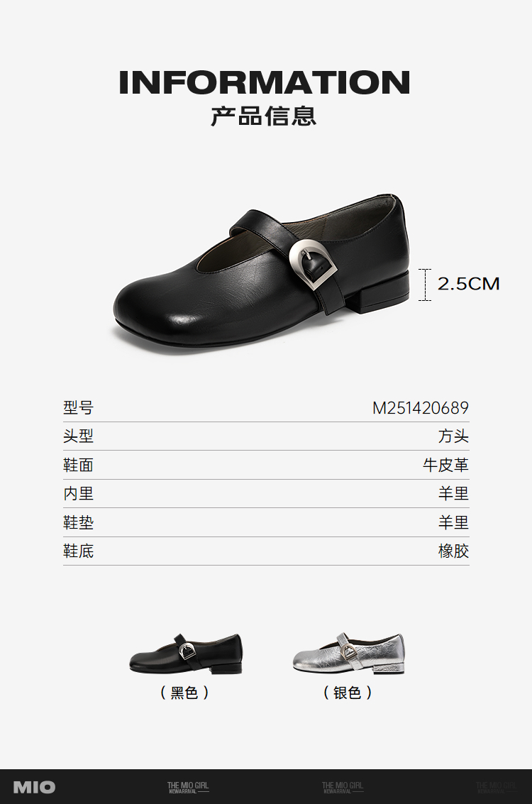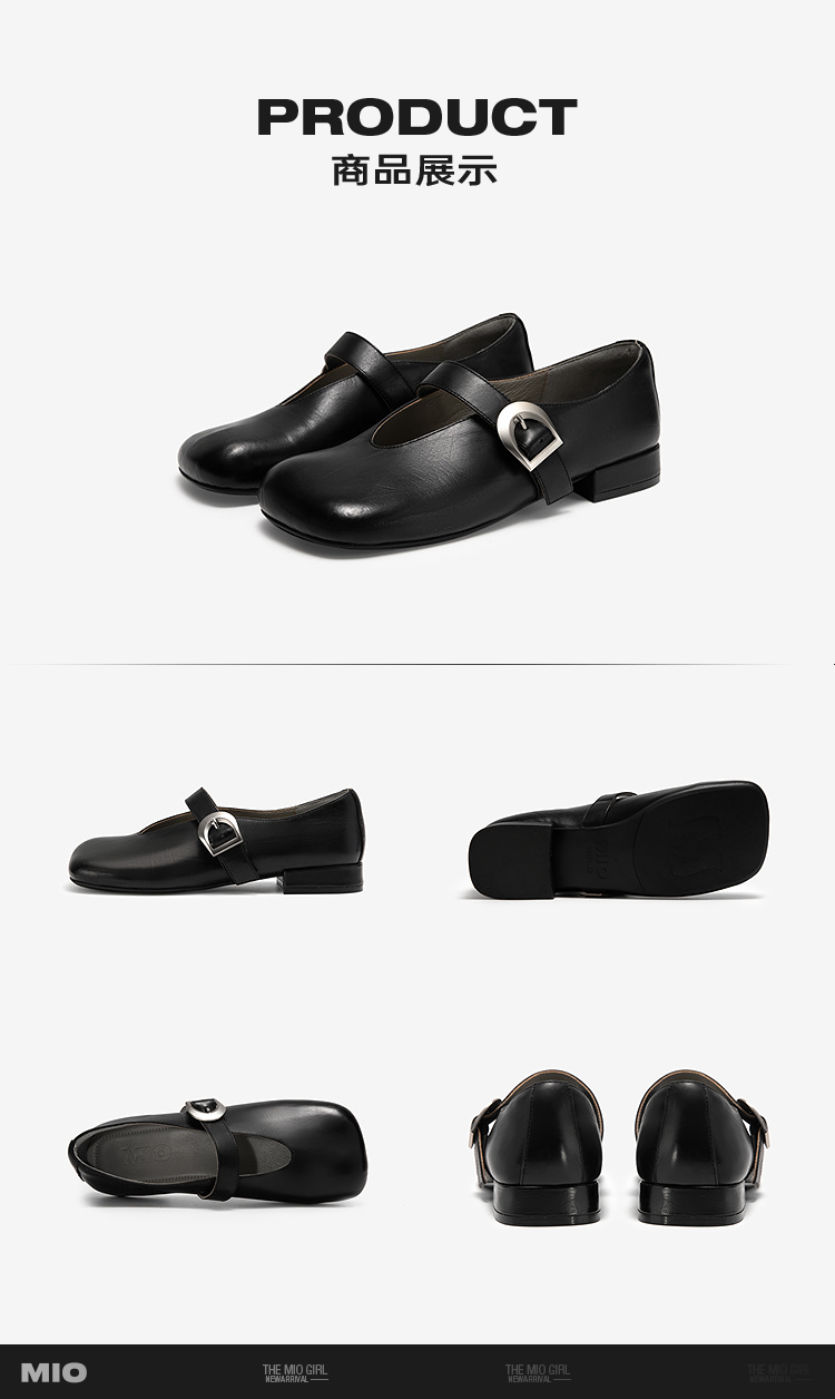 MIO米奥春季新款复古皮带扣玛丽珍鞋时尚甜美方头坡跟单鞋女M251420689