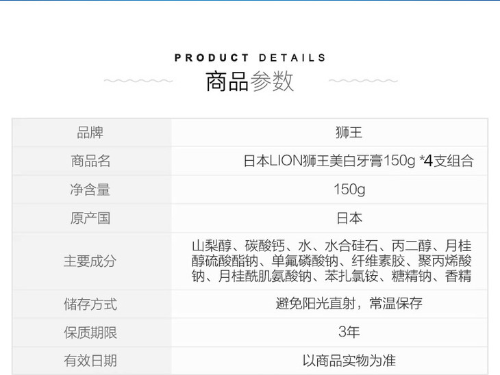 狮王美白牙膏150g