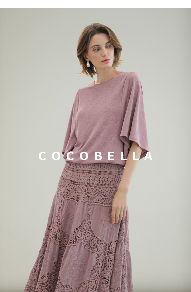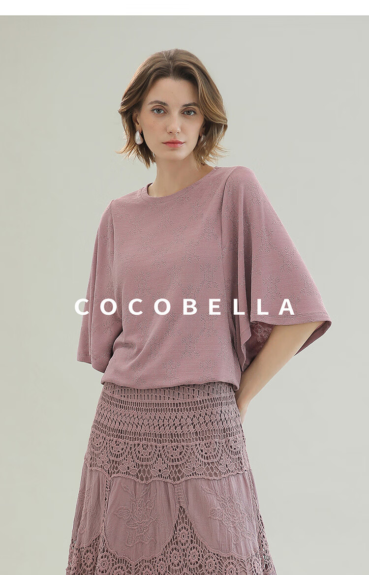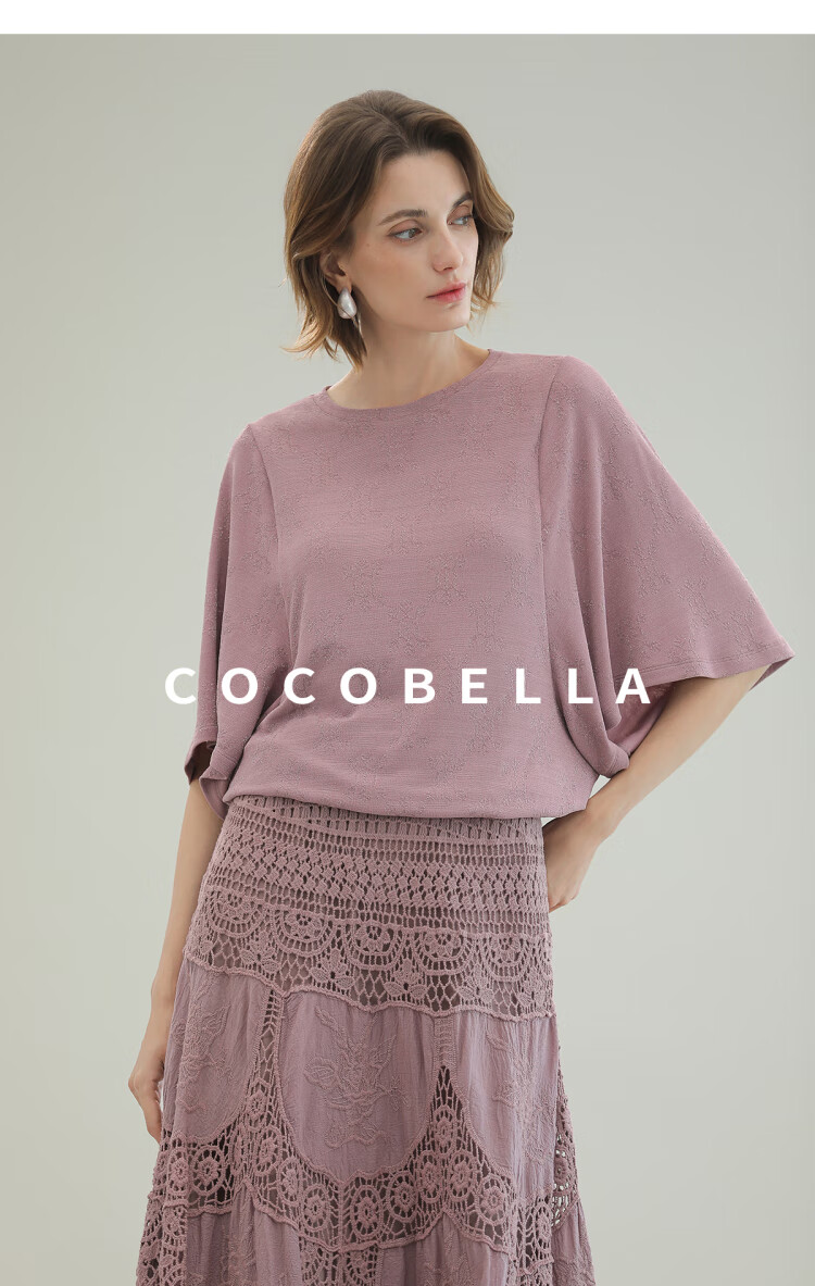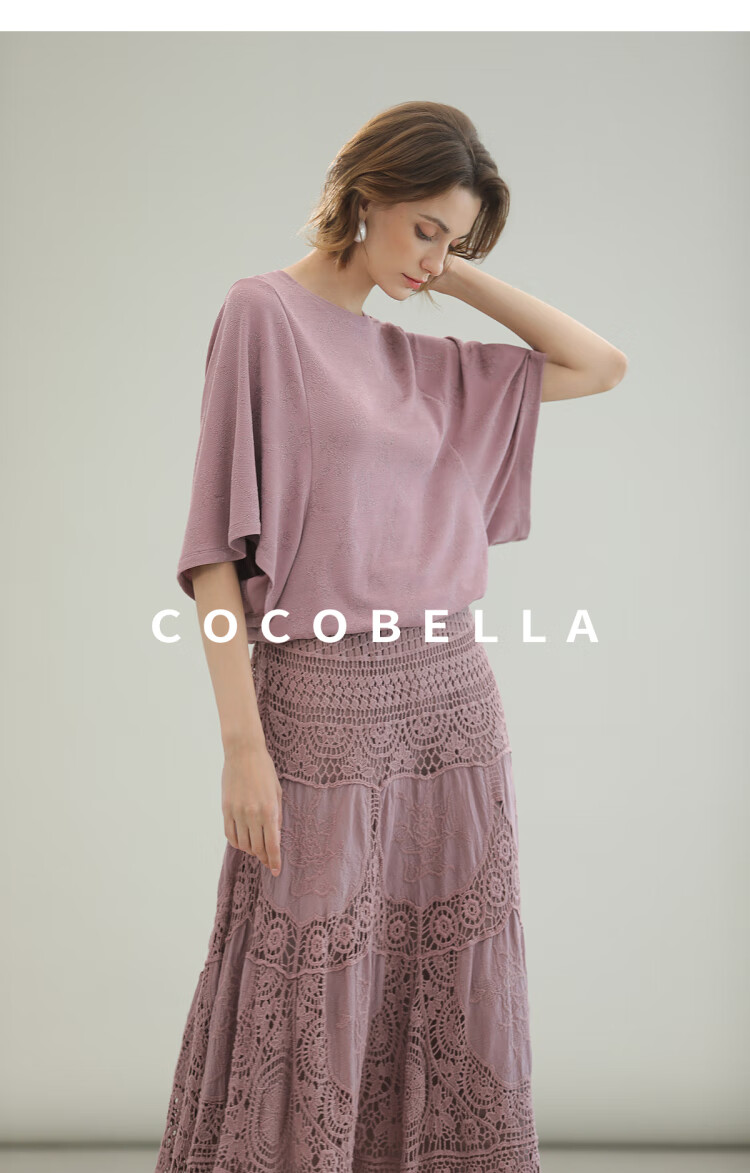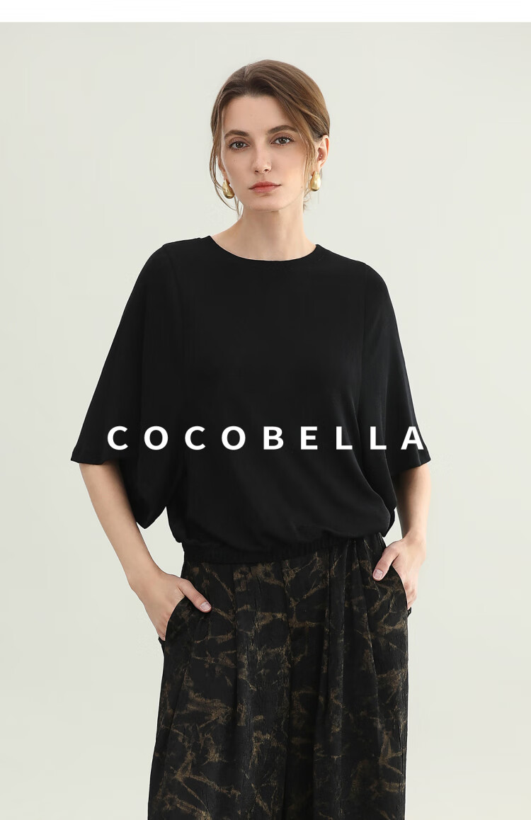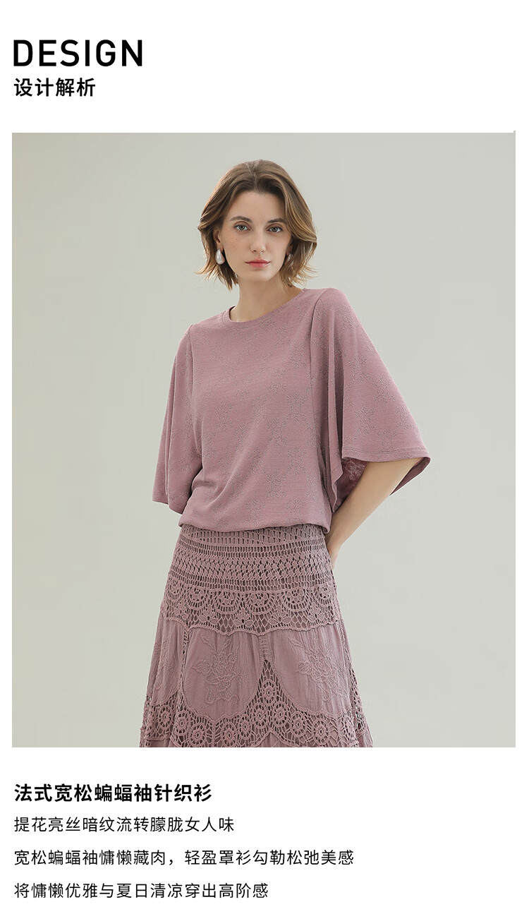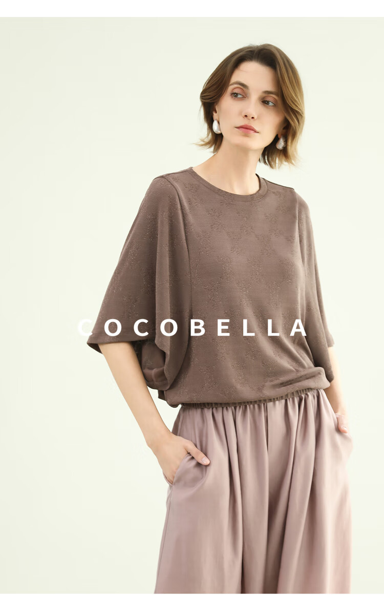 COCOBELLA法式蝙蝠袖针织衫女低调细闪亮丝提花罩衫TS0069-3