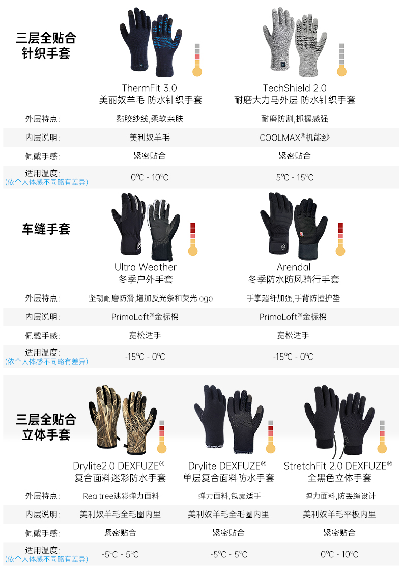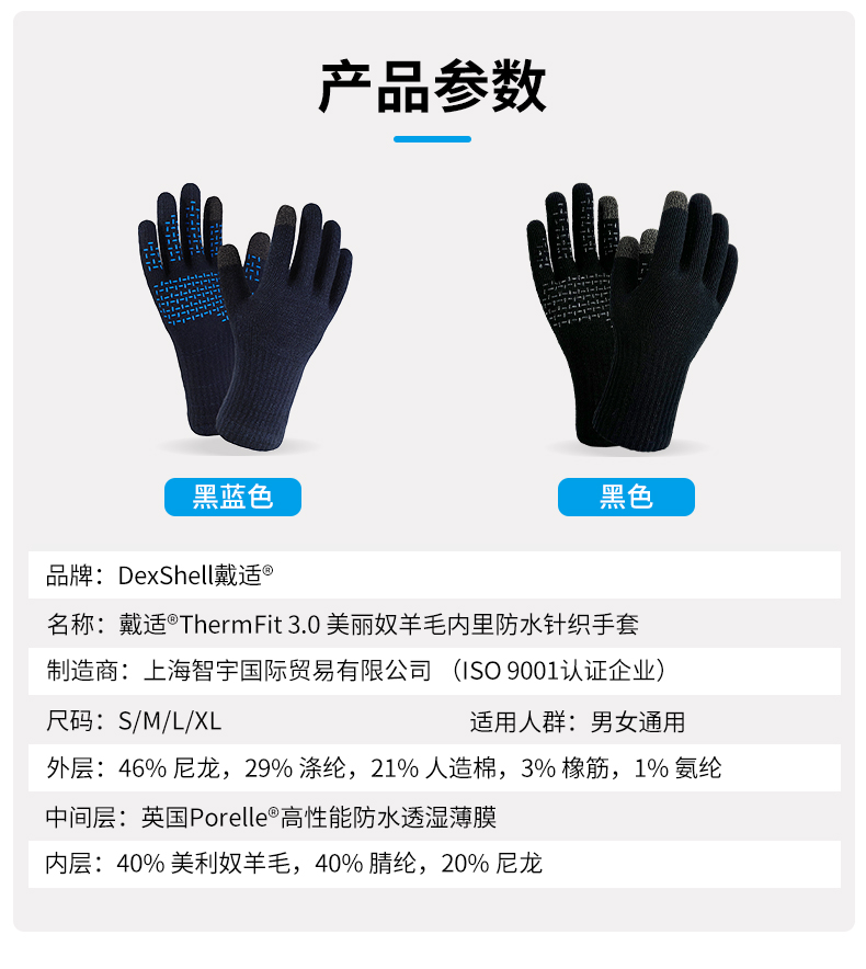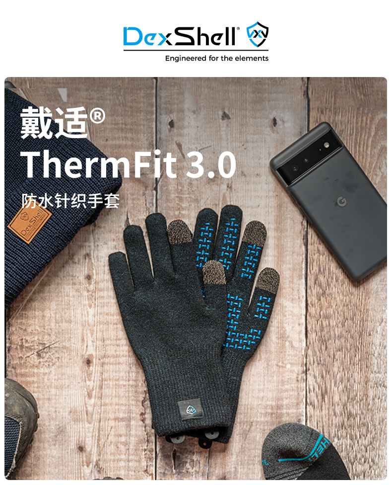 DexShell 戴适 ThermFit 3.0 美丽奴羊毛内里防水针织手套 DG12402HTB