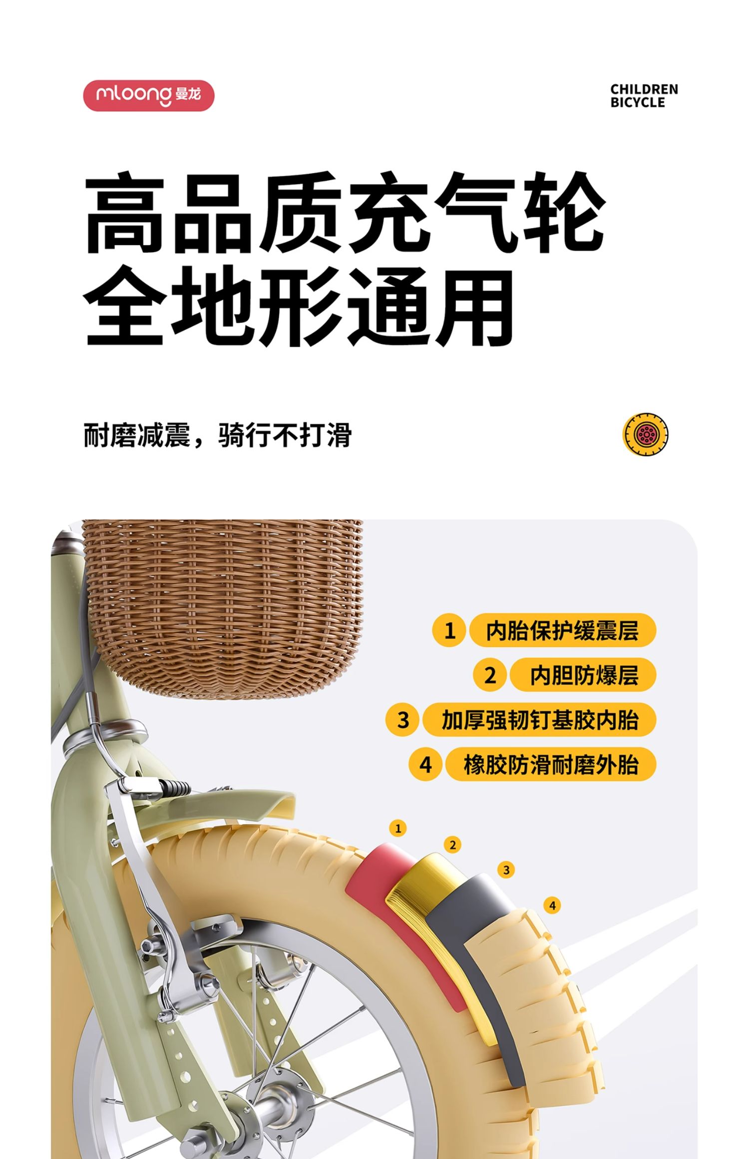 【春日趣玩FUN】曼龙mloong曼龙mloong儿童自行车男孩女孩中大童脚踏小孩单车3-6岁8-12女小童车