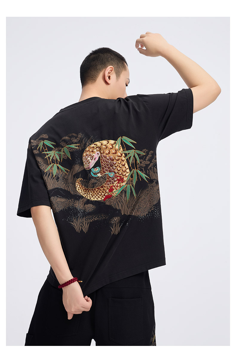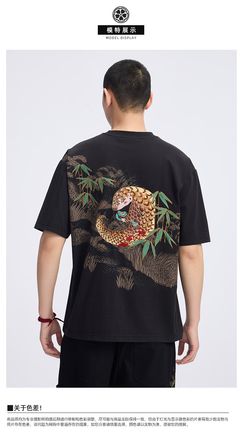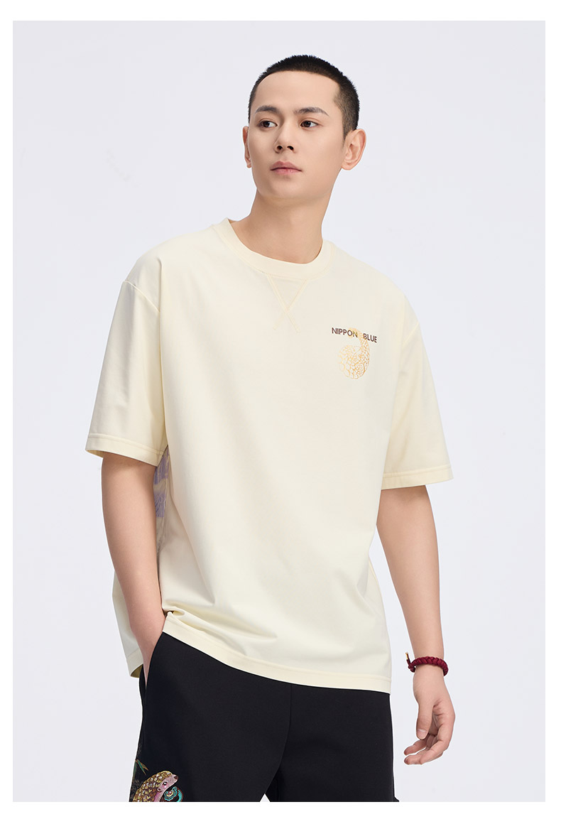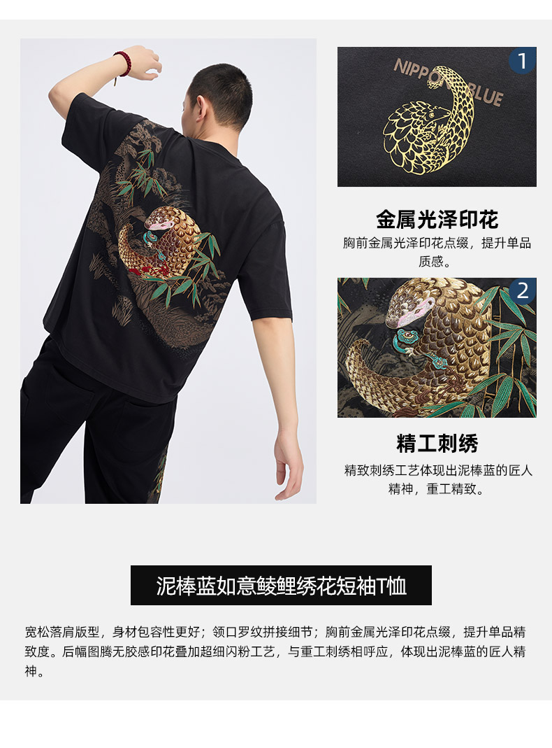 ONIARAI/鬼洗25春夏新品泥棒蓝如意鲮鲤绣花短袖T恤男式 25NOB31