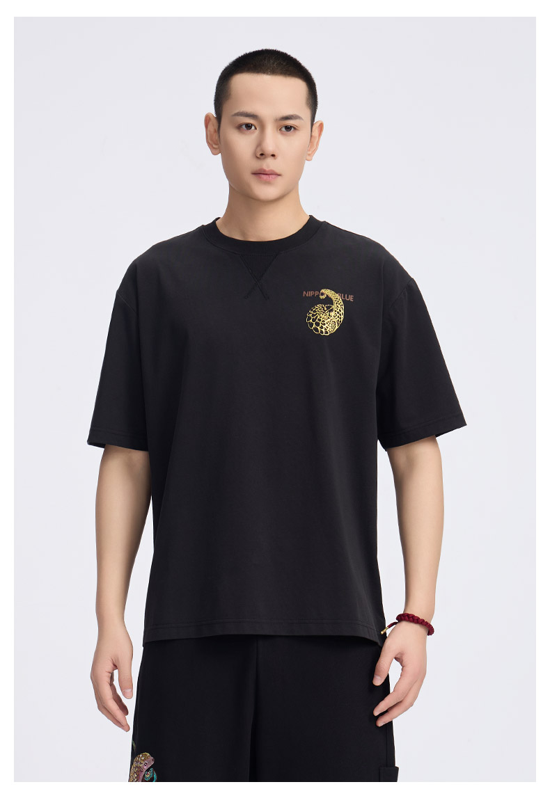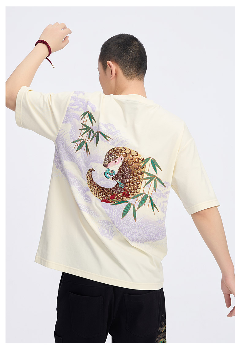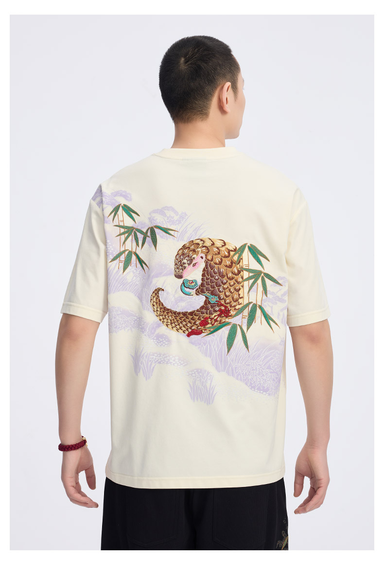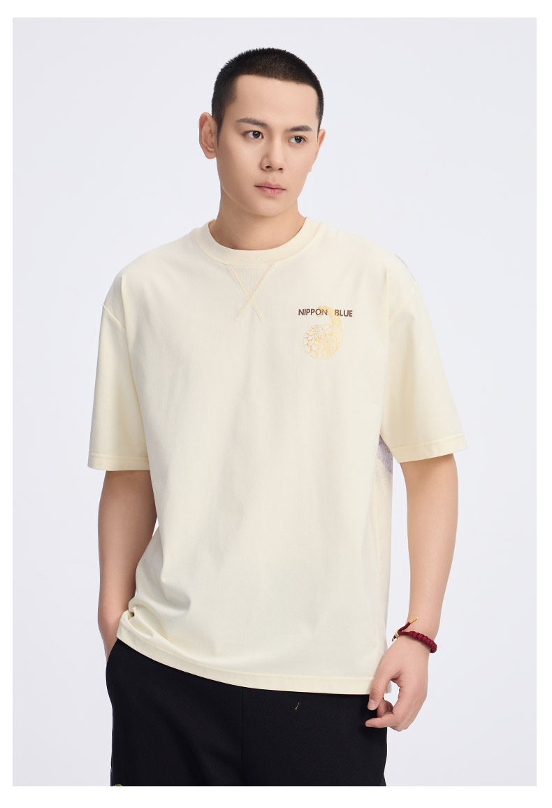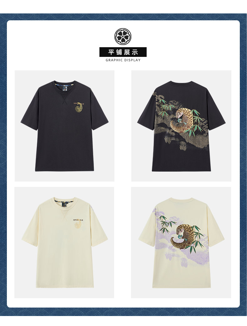 ONIARAI/鬼洗25春夏新品泥棒蓝如意鲮鲤绣花短袖T恤男式 25NOB31