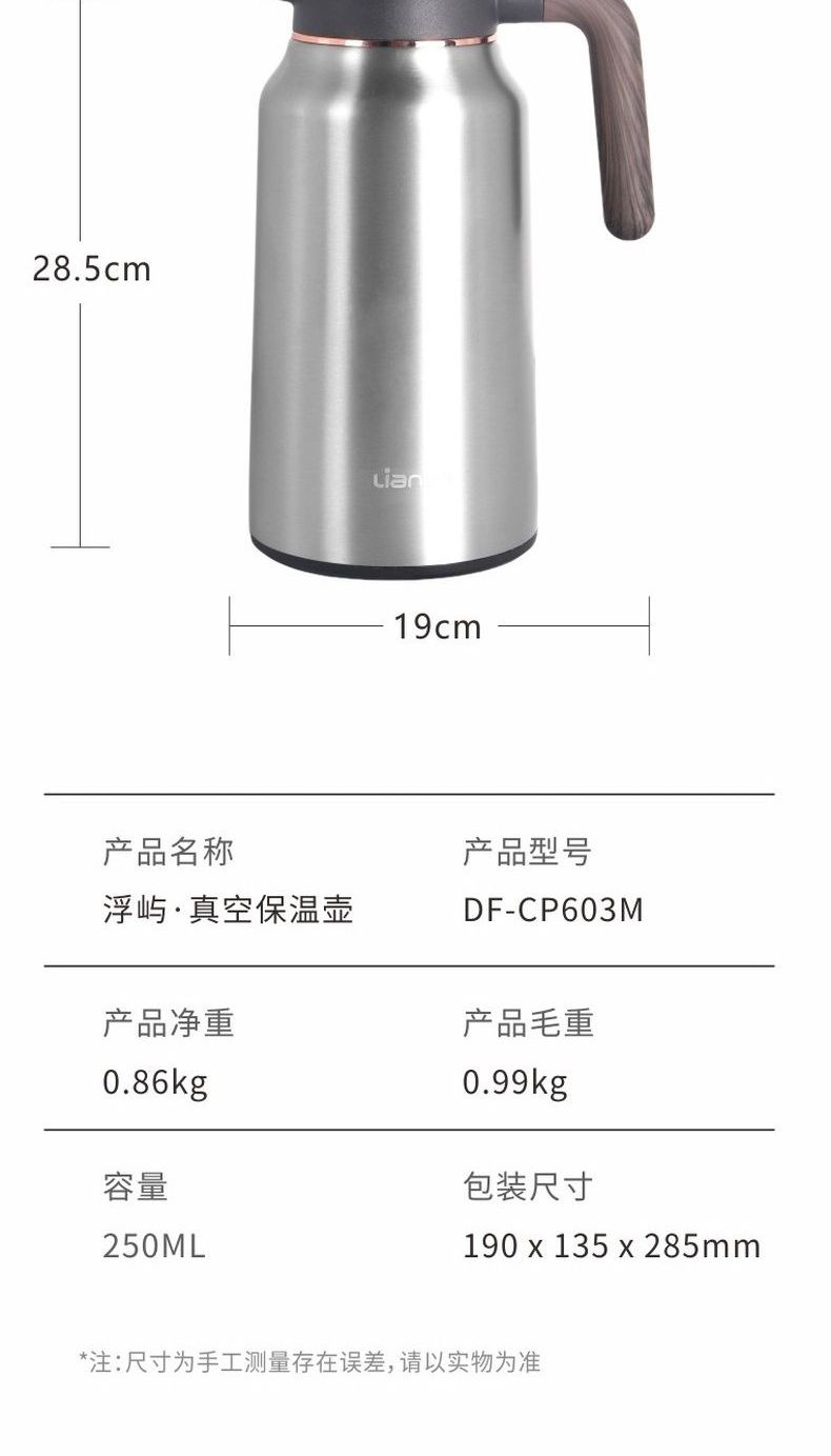 联创 浮屿·真空保温壶 DF-CP603M 不锈钢真空大容量家用保温瓶