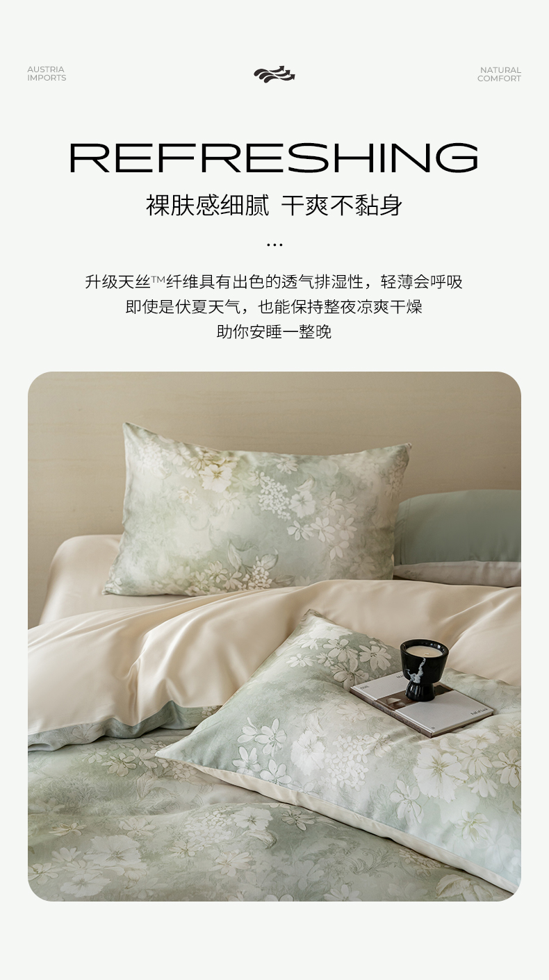自然醒60支进口莱赛尔兰精天丝数码印花暗合简约款四件套HS