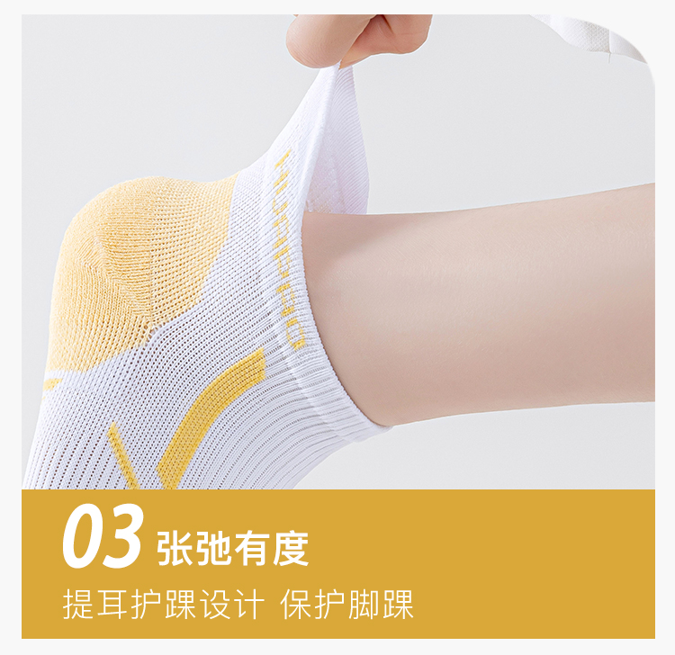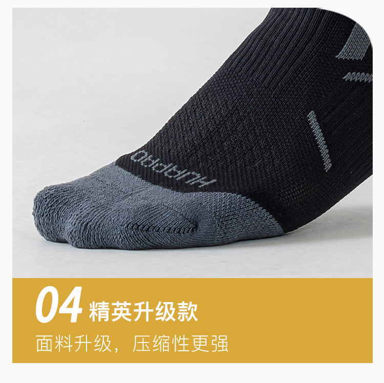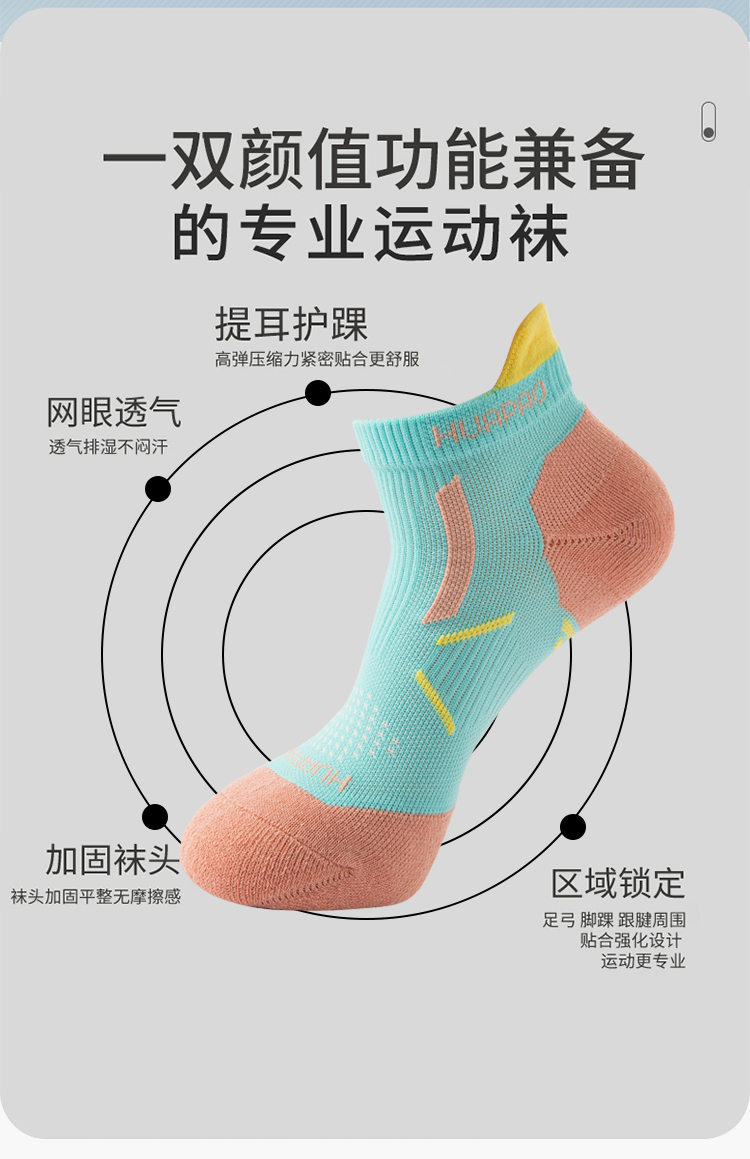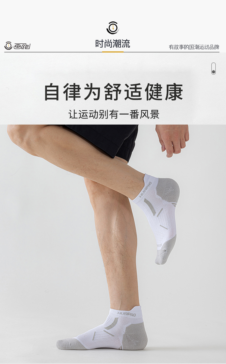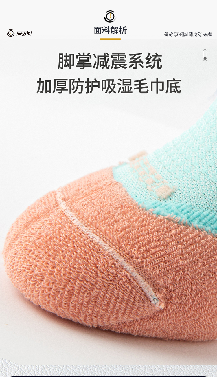 为舒适而生的运动袜!★ 脚掌减震系统、加倍防护,弹跳舒适;★ 吸湿毛巾底,增加摩擦力;★ 高弹透气面料,螺纹工艺,耐磨耐穿;★ 张弛有度、束腰防滑条,护踝设计。